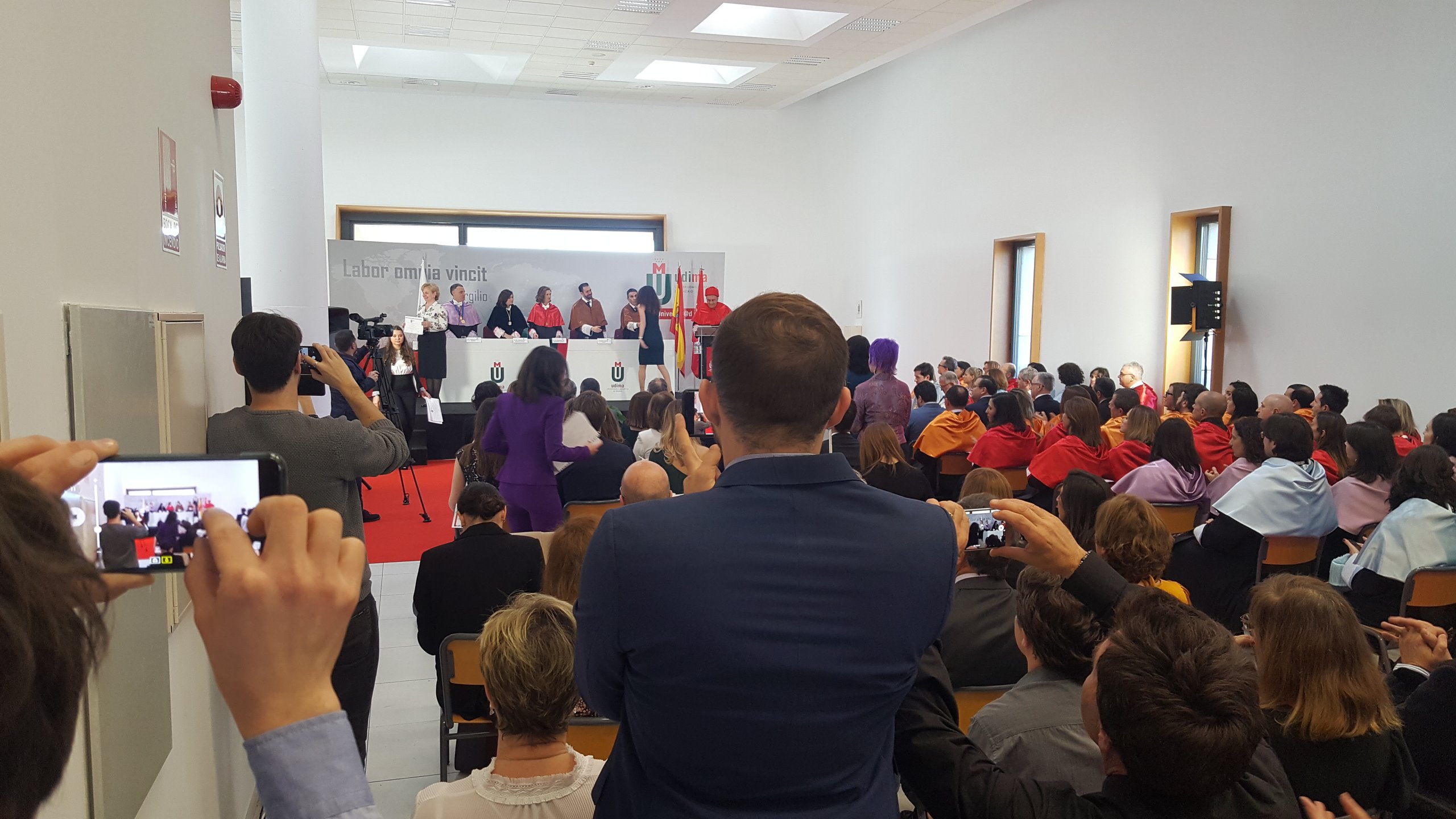 El evento arrancó, de la mano de la rectora de la UDIMA, Concha Burgos, con la investidura como nuevos Doctores de José Tovar Jiménez, con María José Pérez Fructuoso como madrina; María Jesús Muñoz Company, con Fernando de la Fuente Honrubia como padrino; Noelle Rodríguez Garrido, con Esther Pascua Echegaray como madrina, y con Ruperto Guerra Bermúdez, que fue acompañado por María Medina Alcoz como madrina. El director del Programa de Doctorado de la UDIMA, Álvaro de Diego, instó a los nuevos doctores a “hacer partícipes a los ciudadanos” de sus respectivas investigaciones.