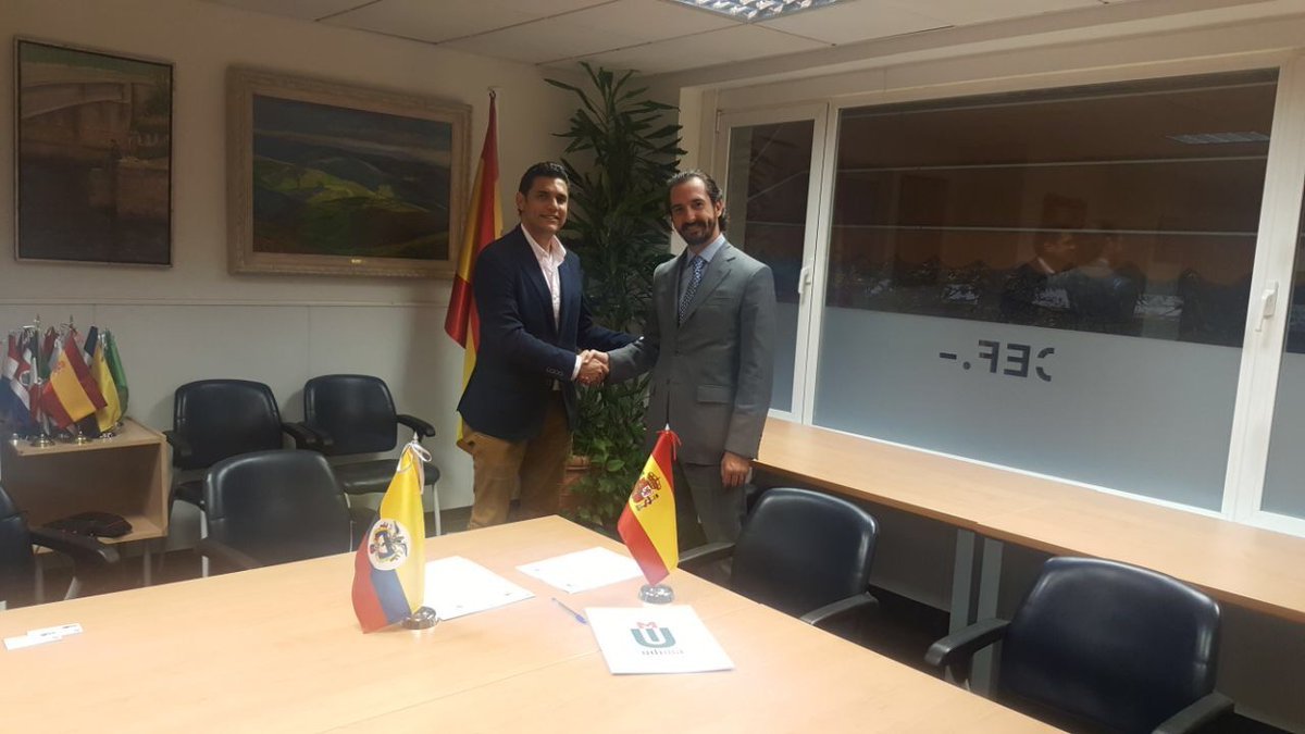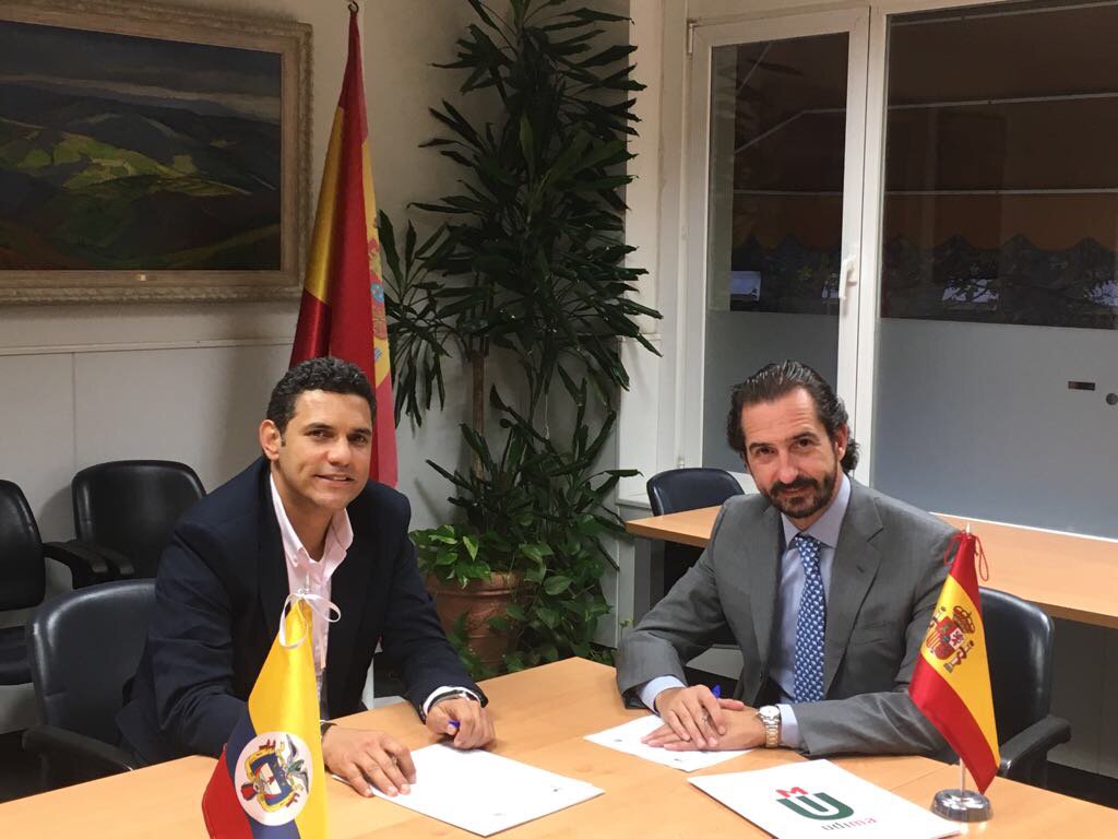 Por parte de la Fundación Universitaria María Cano suscribió el acuerdo su rector Hugo Alberto Valencia Porras, mientras que por el Grupo CEF.- UDIMA lo hizo su director general, Arturo de las Heras, quien estuvo acompañado del director de Relaciones Internacionales Fredy Wilber Araujo Reyes.