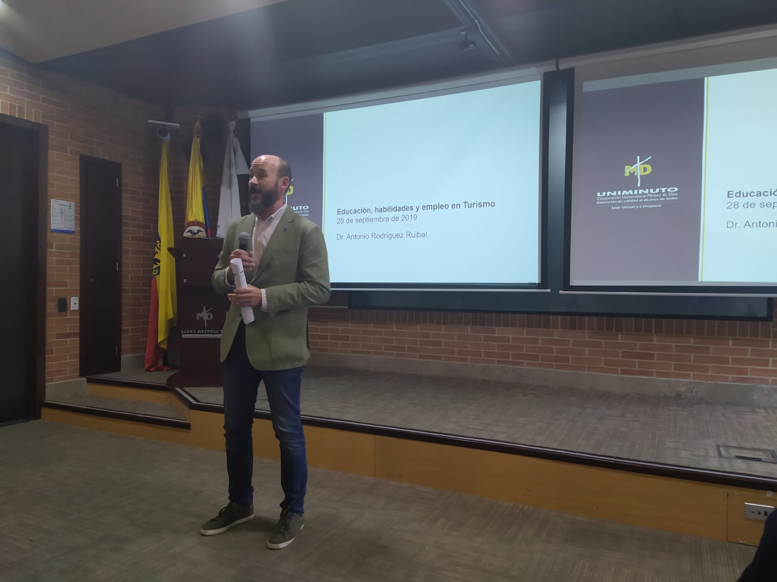 Para cerrar el ciclo de conferencias el doctor de la UDIMA fue invitado a pronunciar la conferencia principal del acto que la UNIMINUTO preparó por el Día Mundial del Turismo, y que sirvió a los participantes para tener una visión de futuro sobre el turismo y el empleo, con su ponencia “Educación, habilidades y empleo en Turismo”.