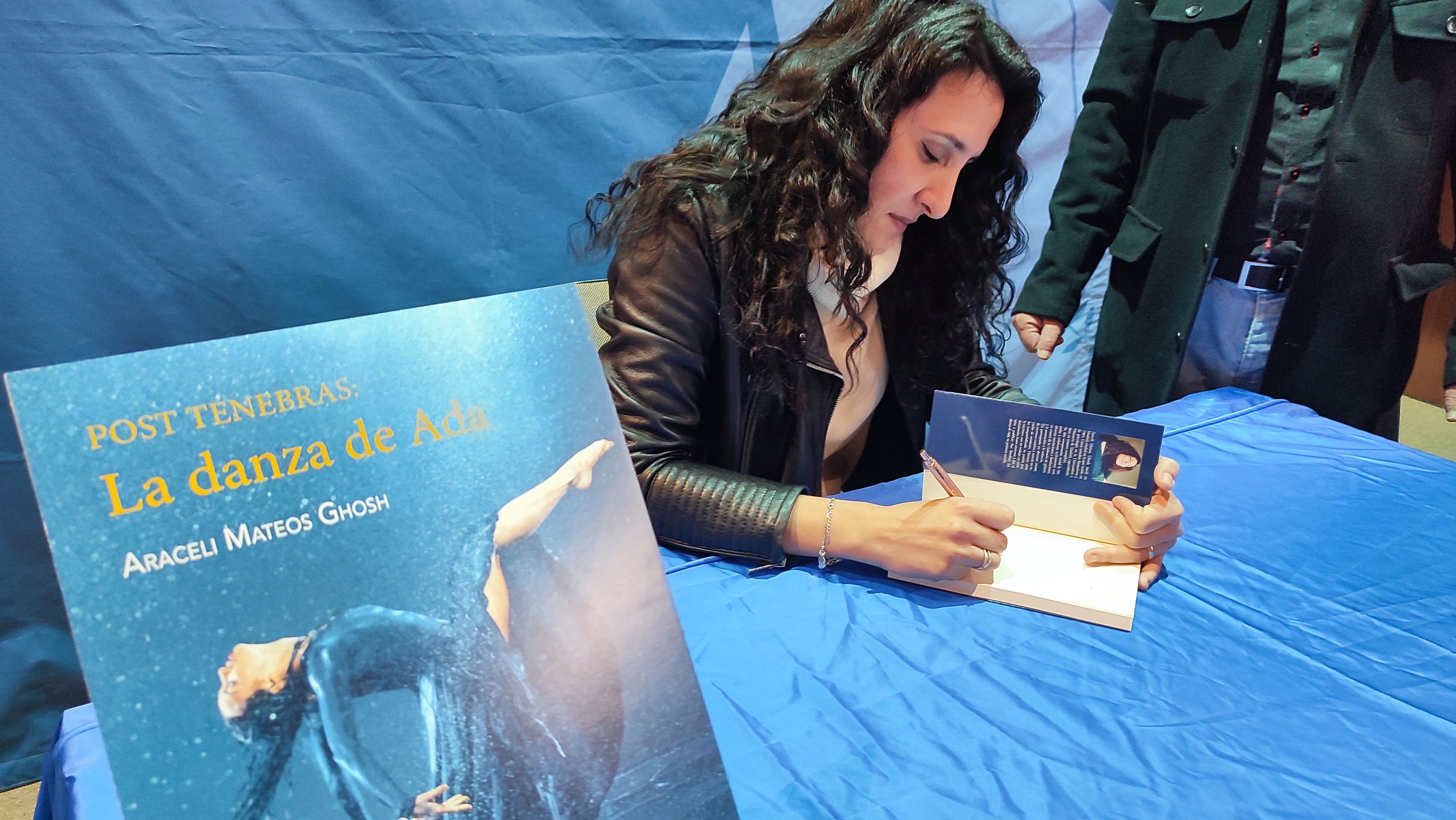 Arropada por más de doscientas personas, Araceli Mateos Ghosh, psicóloga graduada por la Universidad a Distancia de Madrid, UDIMA, presentó este sábado en el salón de actos de la Junta de Distrito de Loranca (Fuenlabrada, Madrid) su primera novela: ‘Post Tenebras. La danza de Ada’, editada por Olé Libros bajo su sello Loto Azul.