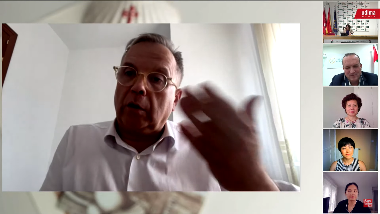 Entre los primeros intervinientes estuvo el doctor Antonio Miguel Carmona, profesor del Grupo CEF.- UDIMA y miembro de la Asociación de Amistad entre China y España. Carmona abogó por enriquecer las relaciones comerciales entre ambos países, e insto para ello a las autoridades españolas a "aprender y aprehender" de los conocimientos chinos. Especialmente a nivel tecnológico, pues sólo con ellos podremos "generar más prosperidad".