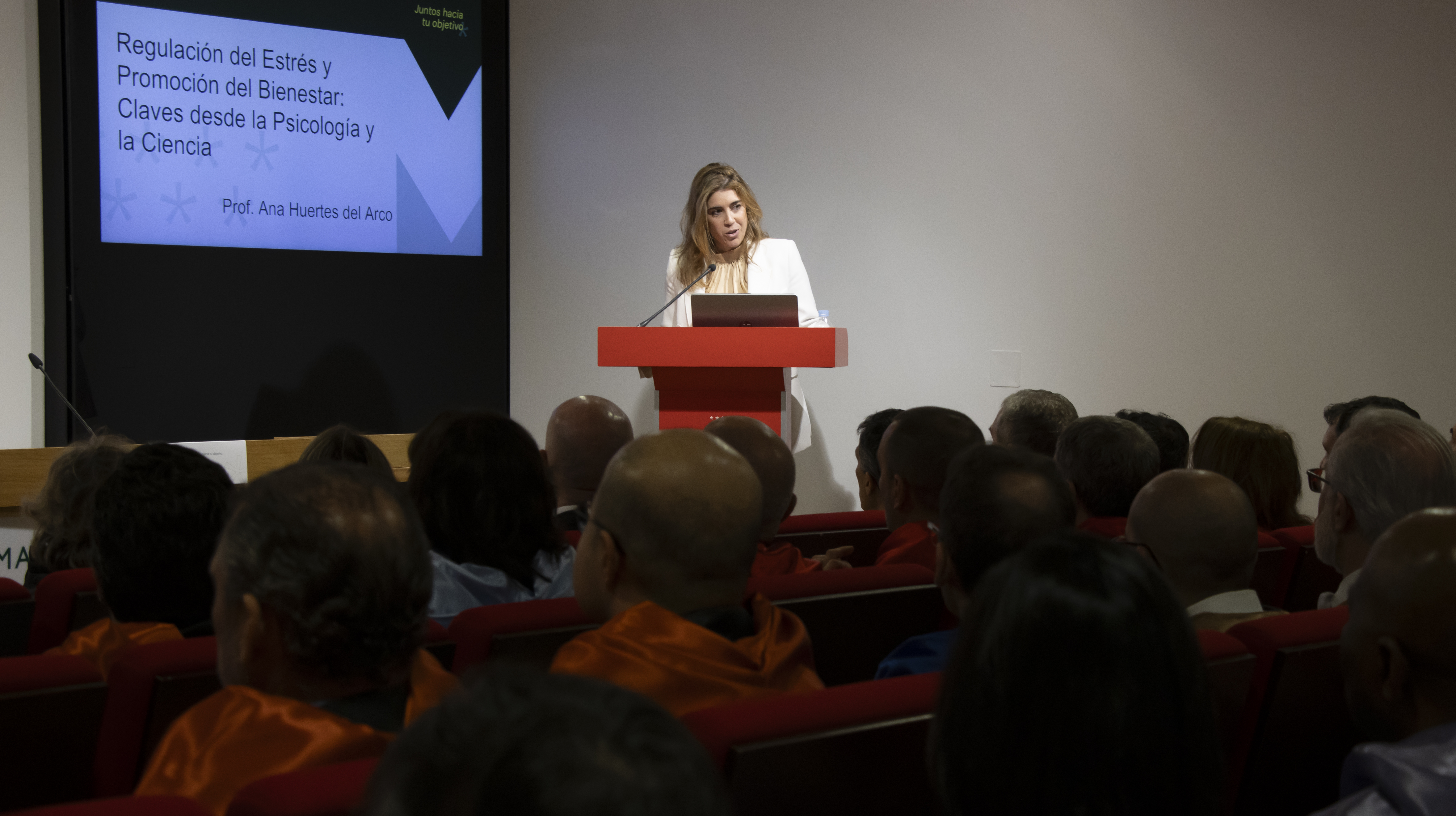 Para escenificar ese esfuerzo que luego "nos dará la felicidad", el rector de UDIMA recordó en primer lugar las palabras del presidente de honor del Grupo CEF.- UDIMA, Roque de las Heras: "Apuesta por las personas jóvenes: por las que tienen todavía pendiente el desarrollo de toda su carrera académica, porque son las que más te van a aportar". Después, apostó por la decana de la nueva Facultad de las Ciencias de la Psicología de la Salud, Eva Izquierdo, para ilustrar con los frutos de ese esfuerzo.
