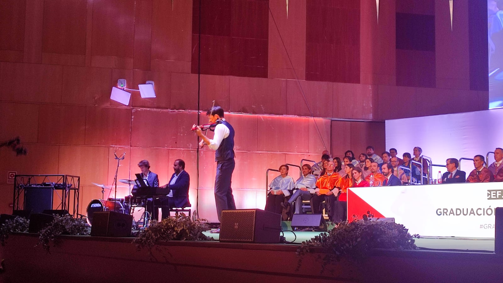 "Gracias porque con vuestro crecimiento académico y profesional nuestra institución también ha crecido", concluyó antes del cierre final con la sesión musical del violinista Pablo Navarro, acompañado de dj, piano y batería.