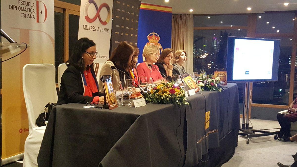 En el evento, que se celebró en el Club Financiero Génova, intervinieron el embajador de Francia, Yves Saint-Geours; María Luisa de Contes, presidenta de Mujeres Avenir; Helena Cosano, subdirectora de la Escuela Diplomática; Eniko Gyori, embajadora de Hungría; Taous Feroukhi, embajadora de Argelia; Doris Osterlof, embajadora de Costa Rica, y Koula Sophianou, embajadora de Chipre.