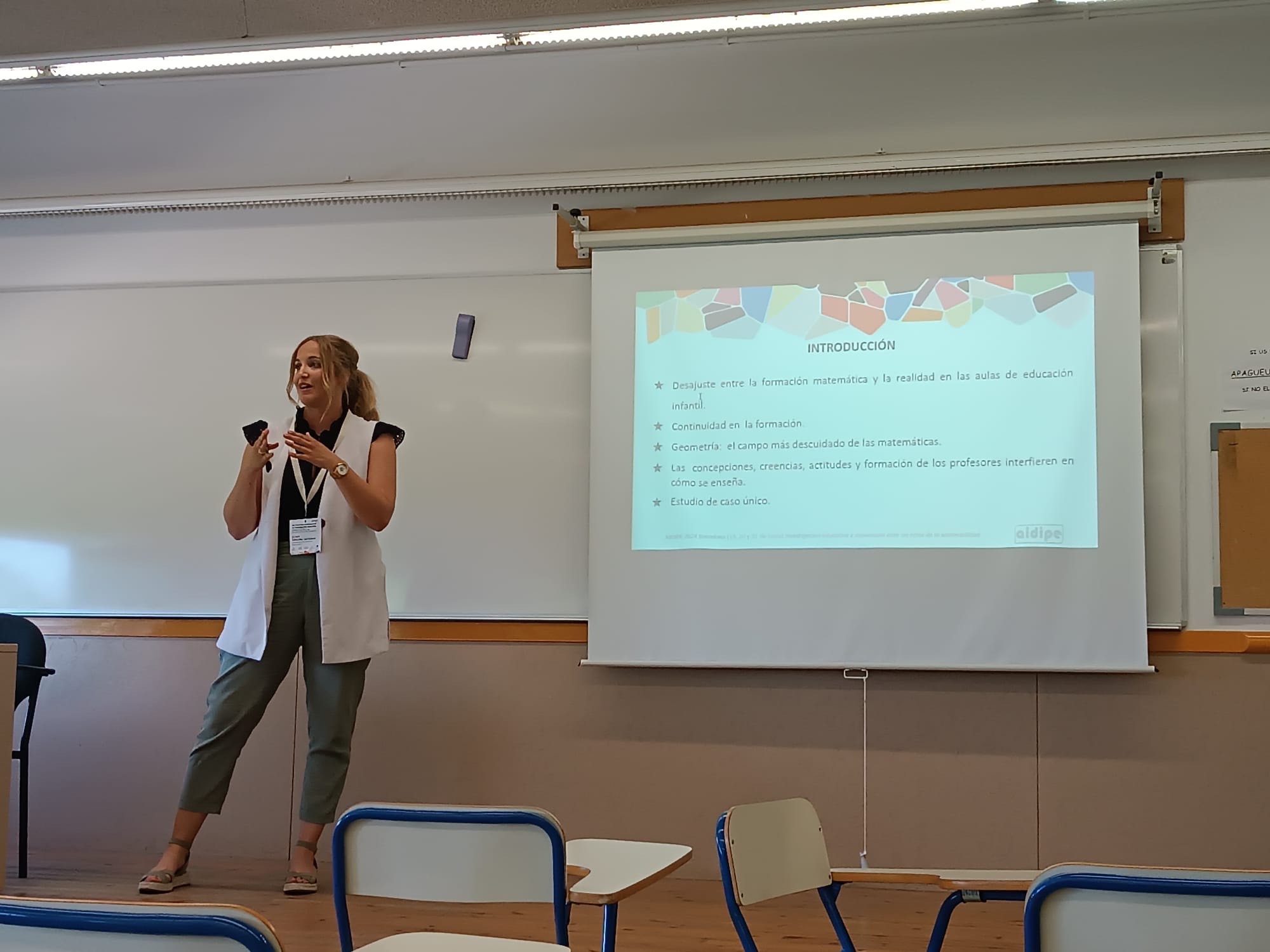 La profesora Sánchez presentó las conclusiones de su investigación titulada ¡La formación de maestros en activo de educación infantil: análisis y percepción del desarrollo del pensamiento geométrico’, destacando la necesidad de analizar las competencias de los profesores sobre las matemáticas y, en particular la geometría, desde la premisa de que son escasas las investigaciones sobre la educación matemática en infantil, y siendo la formación del profesorado de Matemáticas un área de interés en la investigación en Educación Matemática.