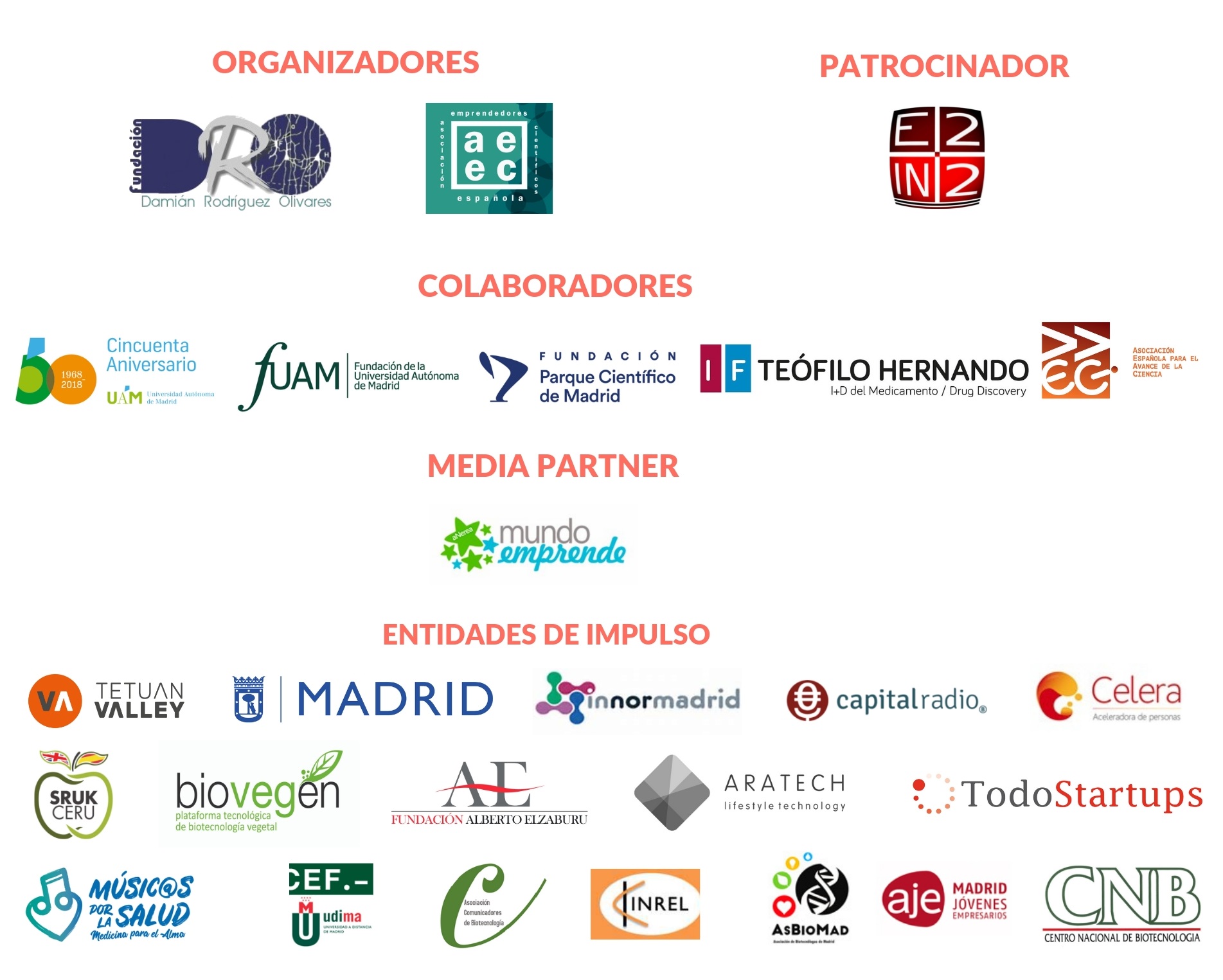 Está organizado por la Fundación Damián Rodríguez Olivares y la Asociación Española de Emprendedores Científicos (AEEC) y patrocinado por E2IN2, empresa que apoya proyectos que generan alto valor añadido económico y social. El congreso también tiene la colaboración de la Universidad Autónoma de Madrid, el Instituto Teófilo Hernando, el Parque Científico de Madrid y la Asociación para el Avance de la Ciencia (AEAC), y con el Grupo Educativo CEF.- UDIMA y el periódico online de su propiedad, TodoStartups, como Entidades de Impulso.