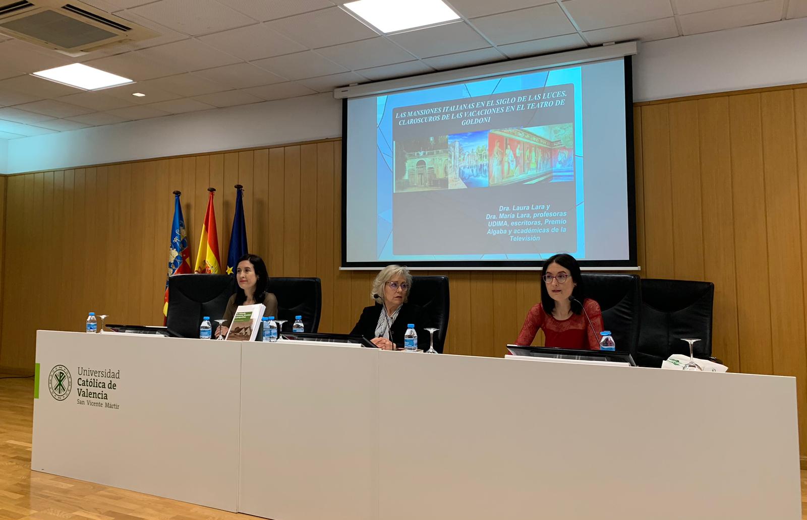 El 25 de abril Laura Lara, profesora de Historia Contemporánea de la UDIMA, y María Lara, profesora de Historia Moderna de la UDIMA, impartieron la conferencia de apertura ‘Las mansiones italianas en el siglo de las luces: claroscuros de las vacaciones en el teatro de Goldoni’, donde analizaron minuciosamente la trilogía de Carlo Goldoni (1707-1793), el comediógrafo más importante del Settecento italiano que dio a la escena la Trilogia della villeggiatura, una aguda metáfora sobre el declive de la burguesía.