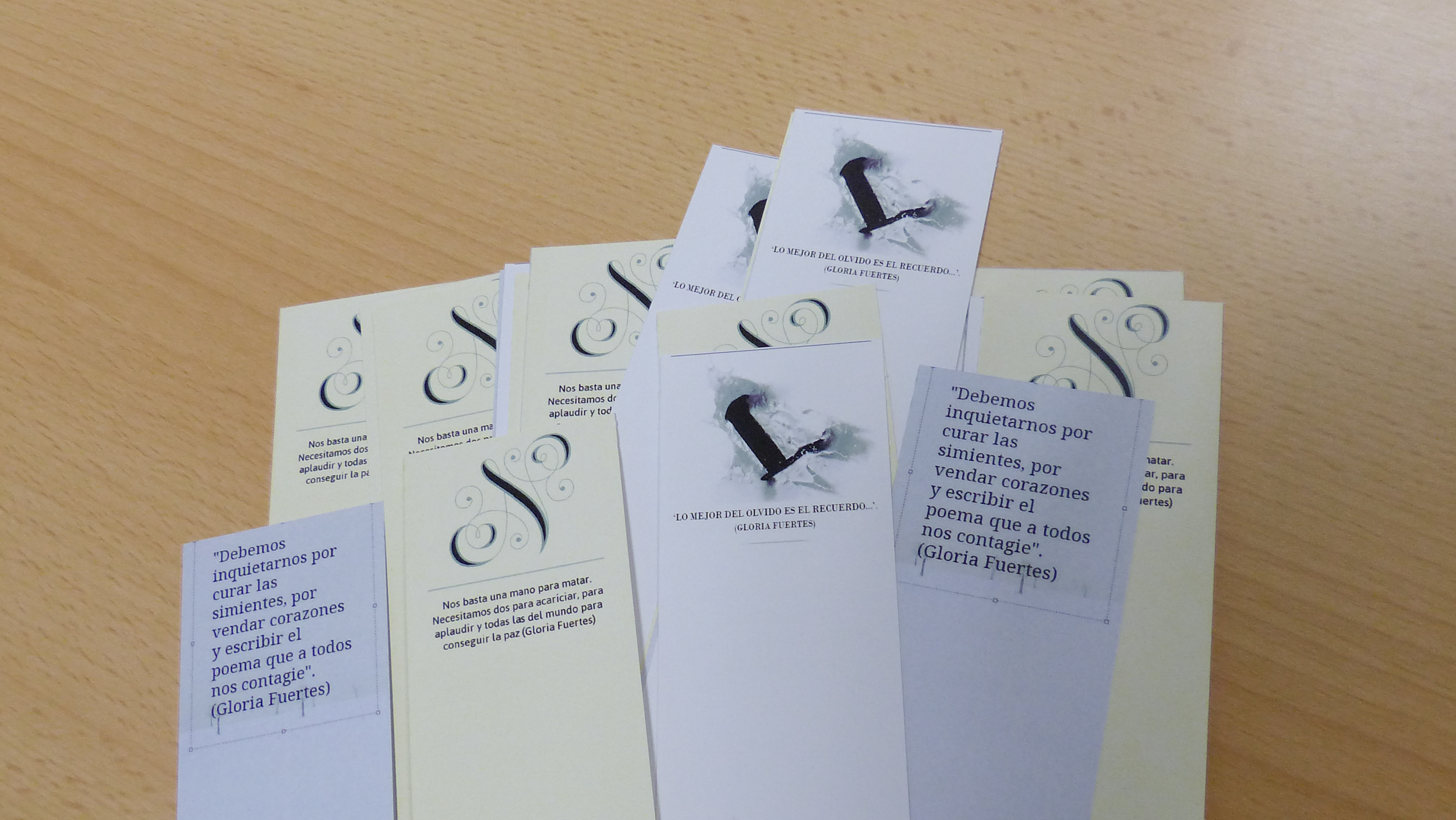 Hasta 40 trabajadores, entre profesores y personal administrativo y de servicios, se sumaron a este evento, en el que también se repartieron, como pequeño homenaje al centenario del nacimiento de Gloria Fuertes, marcapáginas con algunas de sus frases.