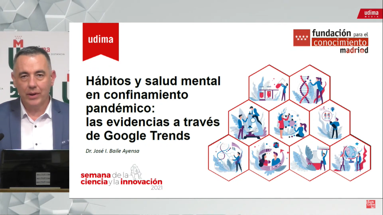 ¿Pueden inferirse cambios significativos en el comportamiento de una población sabiendo el número de veces que se busca un concepto en Internet? Parece demasiado aventurado correlacionar ambos sucesos. Pero los efectos que ha tenido el confinamiento del año pasado han generado "suficiente información para hacer prevención de forma mucho más eficaz" ante confinamientos. Así lo ha defendido el profesor de la UDIMA, José Ignacio Baile, durante la primera jornada de la XXI Semana de la Ciencia.