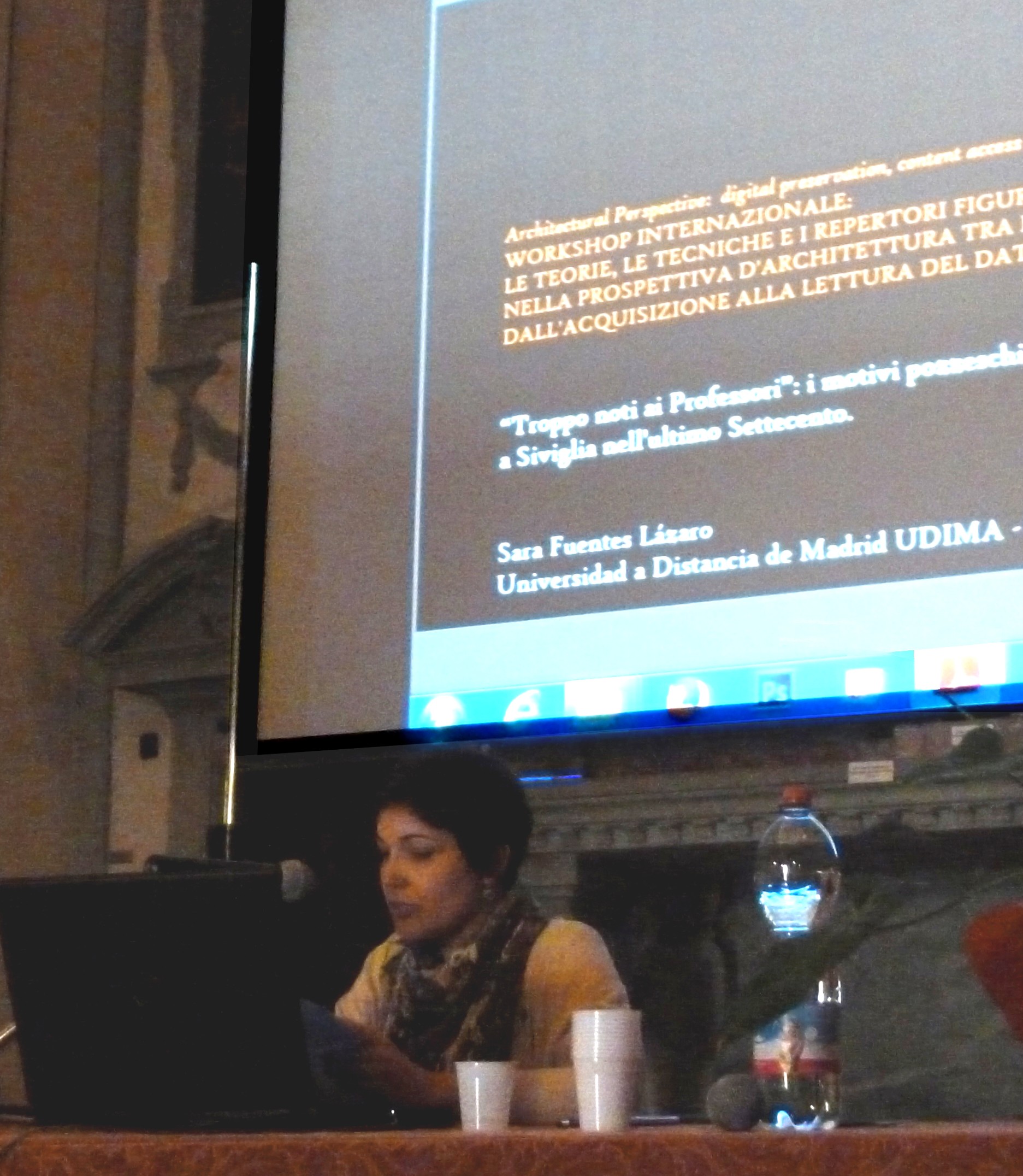 El Congreso Internacional: teoría, técnicas y repertorio figurativo en la perspectiva de arquitectura (1400-1700), denominado workshop por los organizadores con la intención de resaltar su carácter participativo y práctico, reunió a los especialistas más destacados en el campo del estudio de la historia del arte y la ciencia. En el congreso participaron un gran número de arquitectos de diferentes universidades italianas, como las de Turín, Milán, Florencia, Venecia o Palermo. Entre ellas destacó La Sapienza de Roma, cuyo catedrático- Riccardo Migliari, lidera la investigación. El encuentro permitió poner en común, desde el punto de vista técnico e histórico, los avances en el estudio de la representación arquitectónica en la Edad Moderna, que apuestan por la tecnología de análisis de las obras y la reconstrucción 3D. La profesora Sara Fuentes participó en el congreso con la ponencia “Troppo noti ai Professori: I motivi pozzeschi nella pittura architettonica a Siviglia nell'ultimo Settecento”. Su presencia destacó por ser una de las pocas invitadas no italianas con participación activa en las publicaciones y sesiones académicas de este proyecto de investigación, financiado por el Gobierno italiano durante cinco años. El interés de su presentación residió en el examen innovador de los tratados de arquitectura y perspectiva del jesuita Andrea Pozzo en la tradición sevillana, que incluye la descripción de los nuevos fenómenos en la enseñanza de las matemáticas y la repercusión en la práctica artística del periodo. La documentación y estudio histórico de las obras de pintura arquitectónica son los pasos previos e imprescindibles para realizar el catálogo analítico y la reconstrucción digital de los espacios que los artistas crearon en sus decoraciones ilusionistas. El fin último de este proyecto es la realización de aplicaciones (inventarios informatizados, app de realidad aumentada, guías técnicas, etc.) destinadas a la conservación y difusión del patrimonio histórico-cultural europeo.