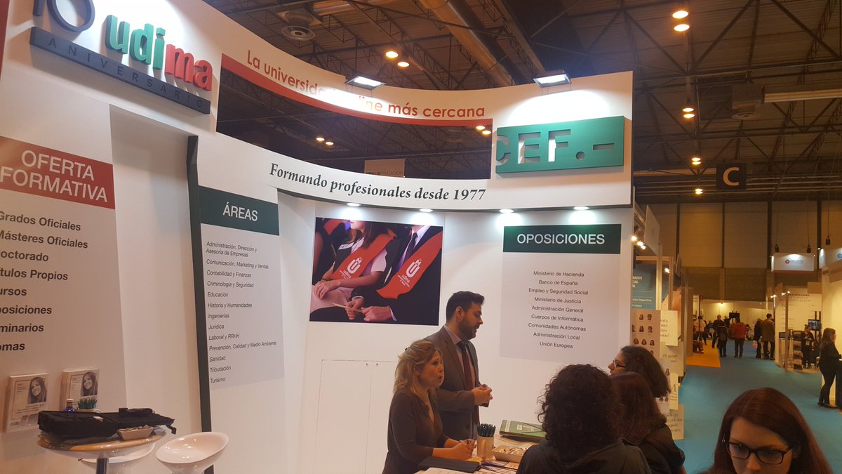 El Salón Posgrado y Formación Continua, en el marco de Aula, es, desde este jueves, el punto de encuentro que reúne en 5 días en IFEMA a más de 136.000 estudiantes, padres y madres, profesores, orientadores, responsables de centros educativos y profesionales de la educación. En este evento, el Grupo CEF.- UDIMA cuenta con su propio stand, en el que un equipo cualificado explica con detalle la oferta académica de la institución académica.