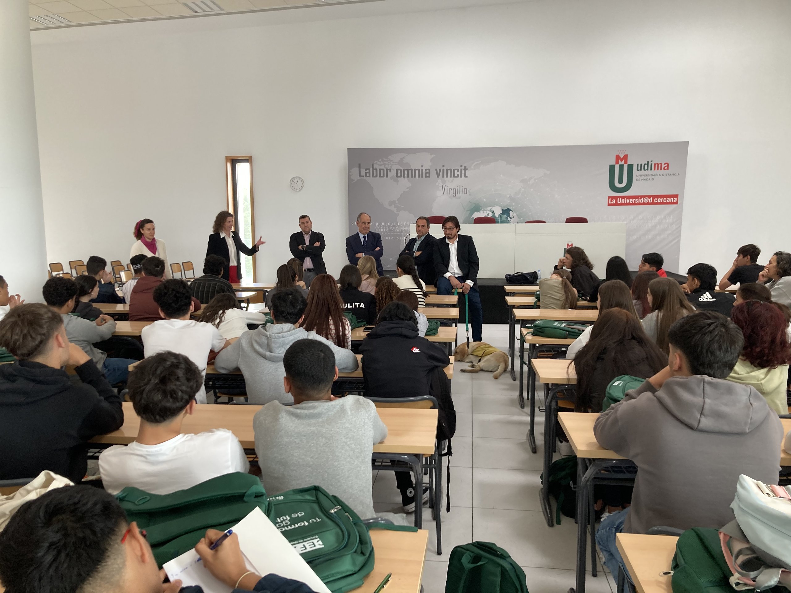 Un total de 80 estudiantes de 4º de Educación Secundaria Obligatoria (ESO), alumnos del centro educativo IES Madrid Sur, visitaron este lunes, 20 de mayo, El Campus de la Universidad a Distancia de Madrid, UDIMA, en la localidad madrileña de Collado Villalba, en el marco de una actividad que forma parte del Programa Empresa Familiar en las Aulas.
