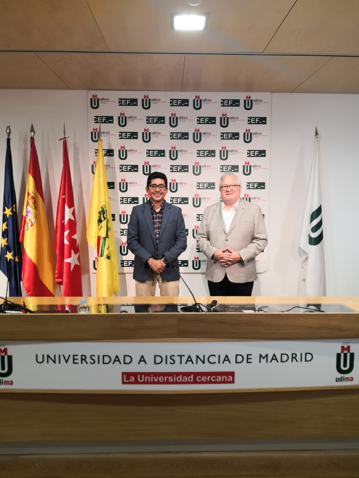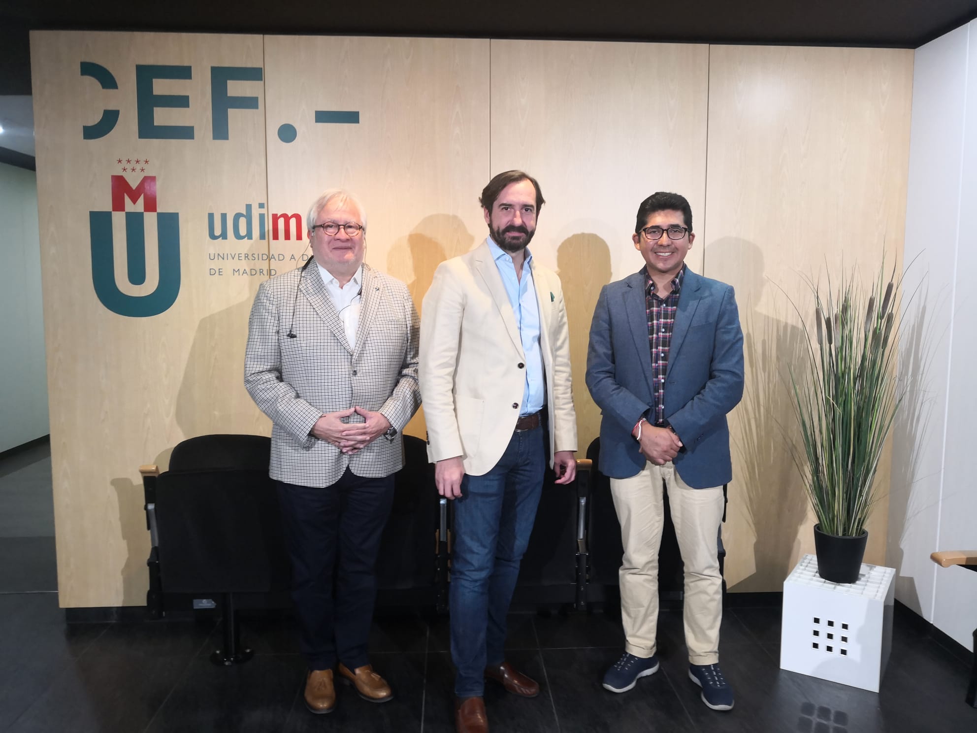 Durante su visita a España, Lizarraga Guerra mantuvo también un encuentro informal con Arturo de las Heras, presidente del Grupo Educativo CEF.- UDIMA, en la sede de la institución académica en Madrid capital.