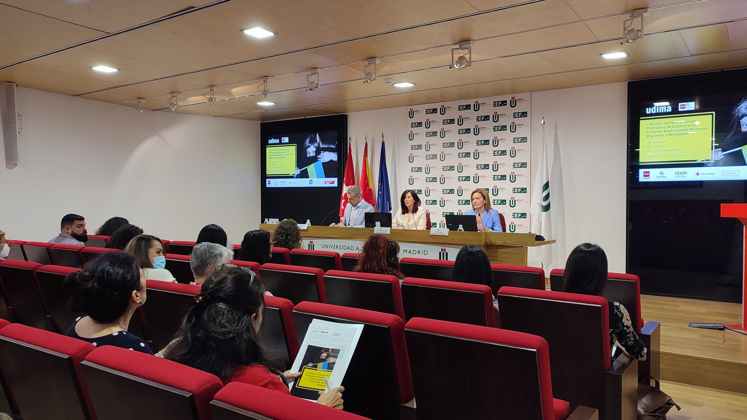 "¿Os habéis parado a pensar en qué sentiríamos en una situación de huida? Llegar a un país, lejos de tu hogar, con miedo y sin poder comunicarte, esperando para empezar una nueva vida... y donde la primera dificultad es la lengua y la cultura". Ahí es donde entra, como está demostrando la cruda actualidad, el papel fundamental de los profesores de enseñanza del español como lengua extranjera (ELE). Una labor "maravillosa" que la UDIMA puso en valor durante la I jornada ELE sobre migrantes y refugiados acogida en su campus.