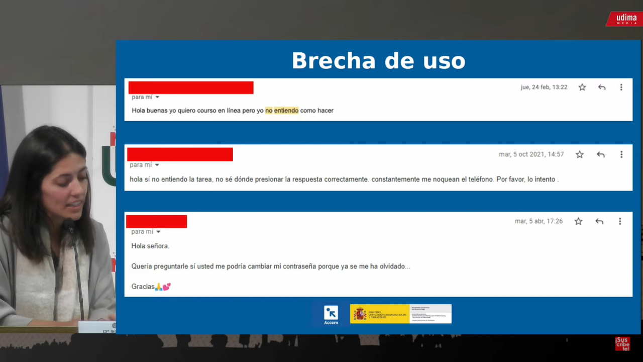 Videotutoriales y cursos de alfabetización, correos de seguimientos, herramientas de progreso y finalización del curso, foros de debate, insignias por trabajos realizados.... persiguen derribar la segunda brecha de uso por desalfabetización digital.