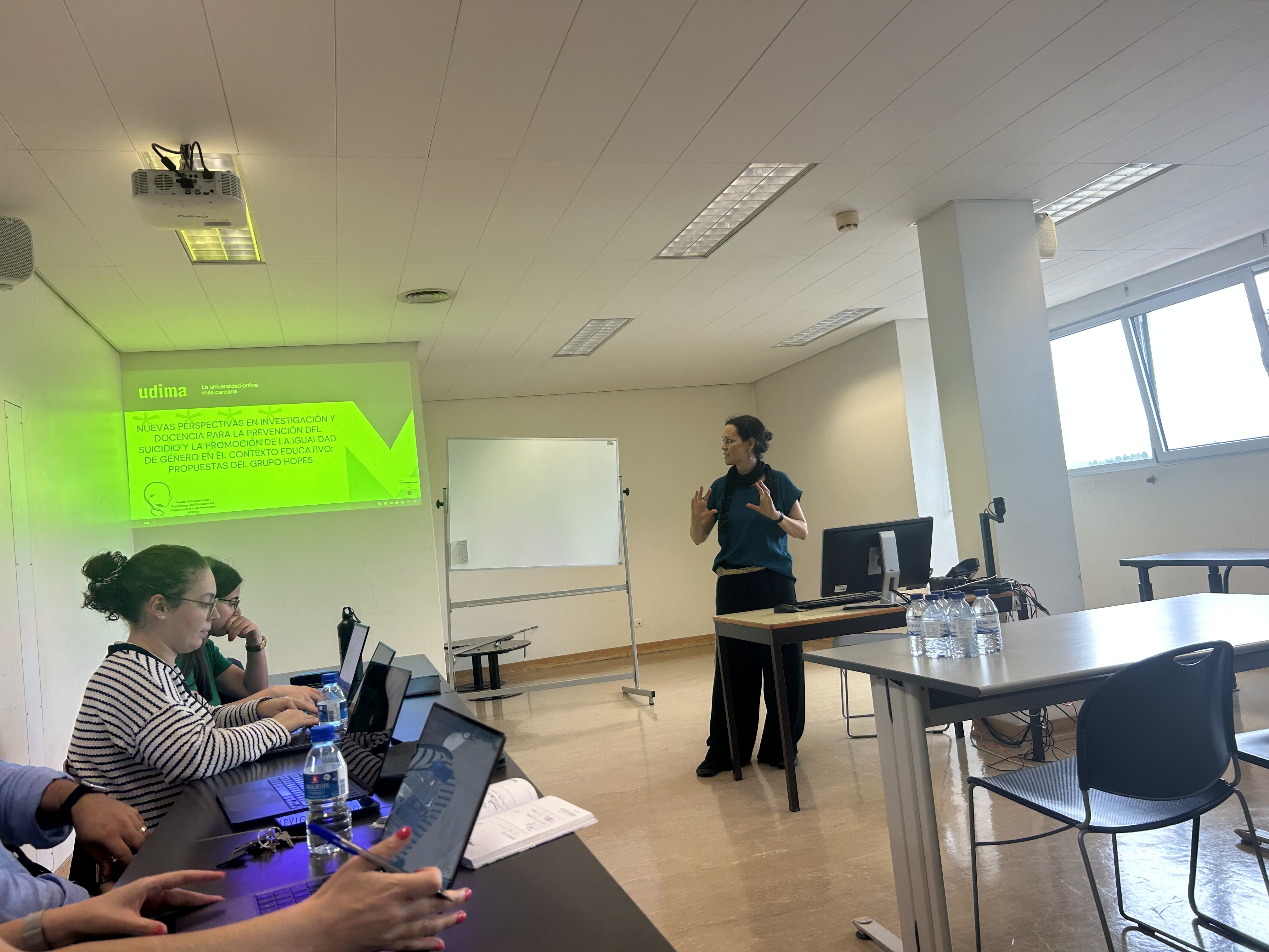 Durante su estancia en Maia, las profesoras Eva Izquierdo y Ana Huertes compartieron nuevas metodologías de enseñanza a distancia sobre igualdad de género y el desarrollo de guías de prevención y actuación ante la conducta suicida de población infanto-juvenil.