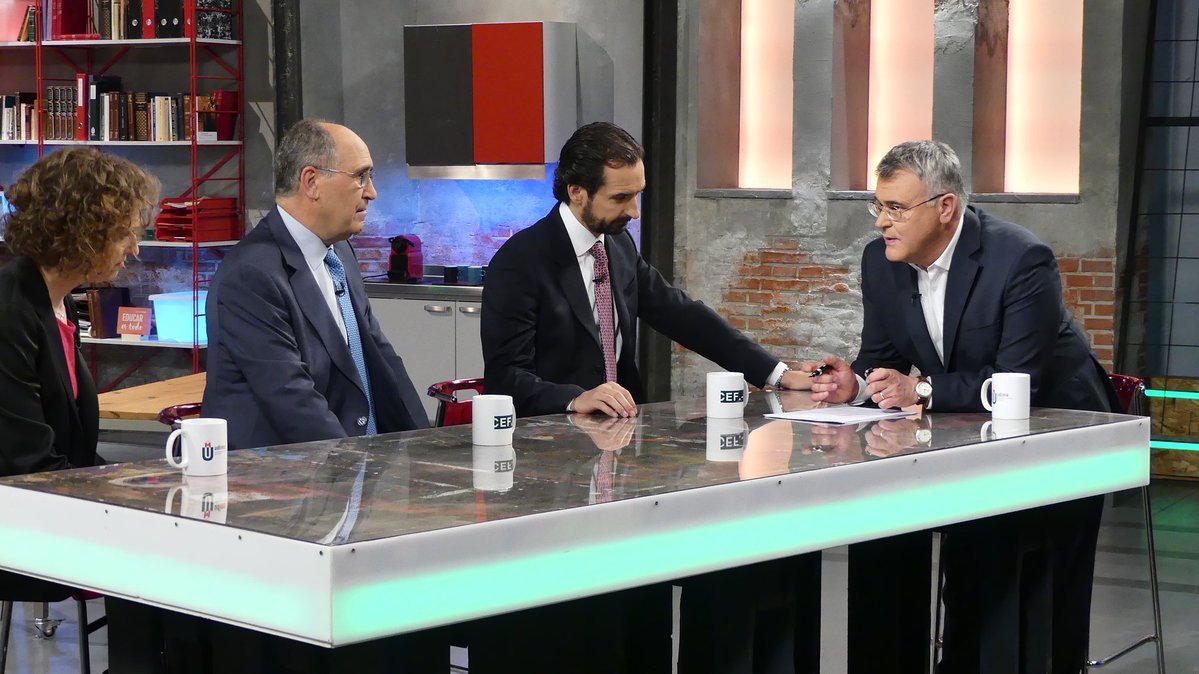 El presidente del Grupo CEF.- UDIMA, Roque de las Heras, acompañado de la directora general del CEF.- y vicerrectora de la Universidad a Distancia de Madrid (UDIMA), Arancha de las Heras, y el también director general del CEF.- y la UDIMA, Arturo de las Heras, explicaron el miércoles 14 de junio, en el programa ‘La Aventura del Saber’, que emite La 2 de TVE, el origen del Centro de Estudios Financieros, con motivo del cuadragésimo aniversario de la escuela de negocios, y la posterior creación, hace casi diez años, de la UDIMA.