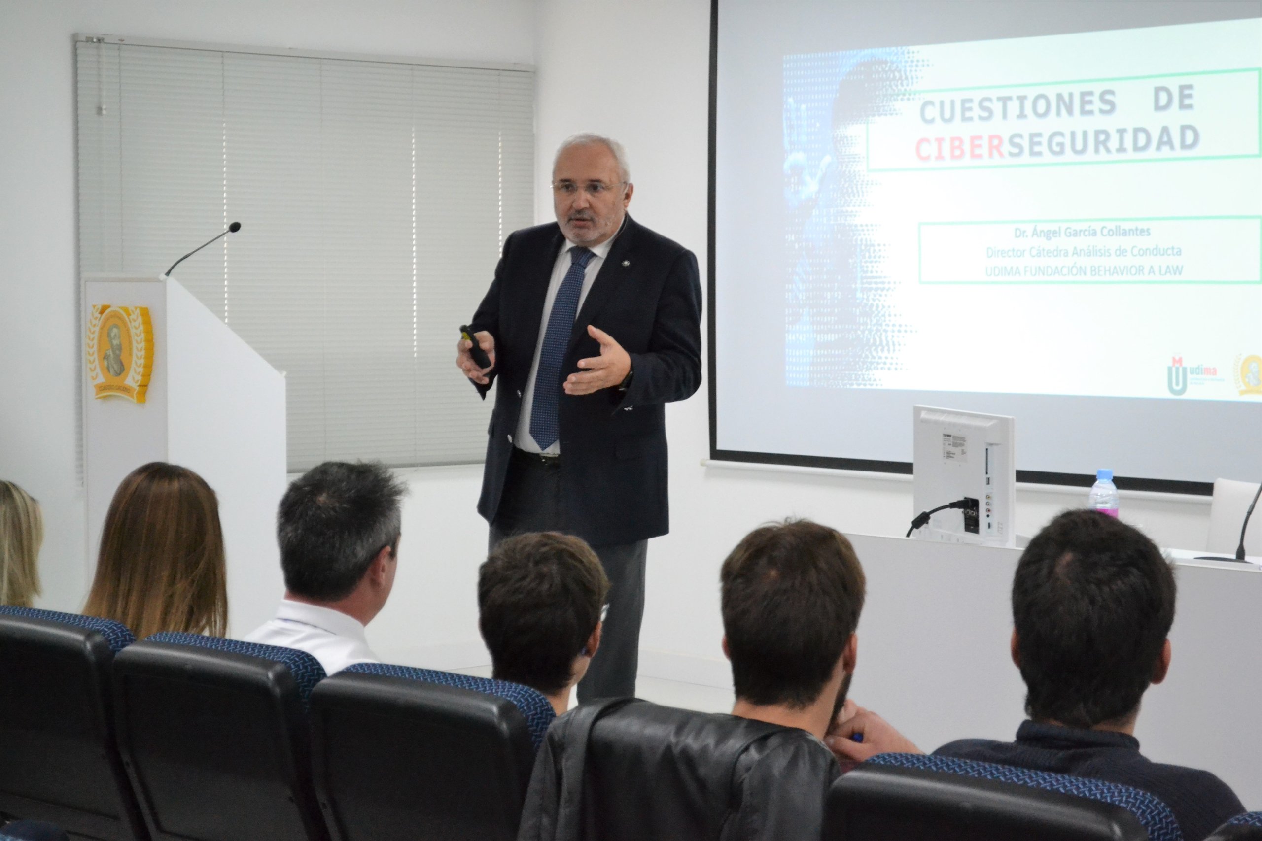 El profesor del Grado de Criminología, Ángel García Collantes, intervino en este relevante foro para presentar las posibilidades que en materia laboral ofrece a los jóvenes la ciberseguridad como especialidad. En este sentido, valoró la gran cantidad de puestos de trabajo que se están creando y que se van a crear en torno a este sector.