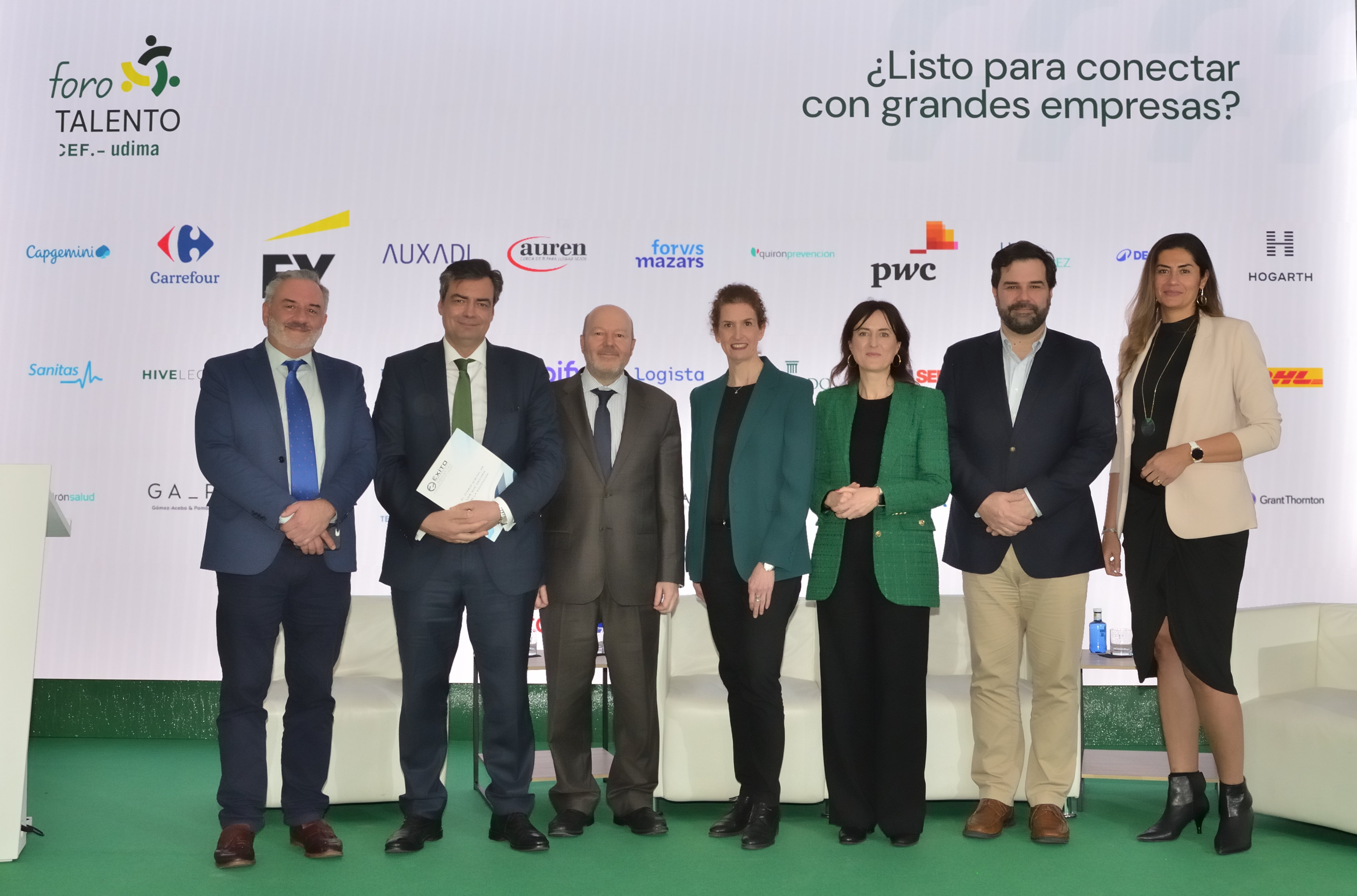 El I Foro Talento CEF.- UDIMA aglutinó en el Palacio Neptuno de Madrid a más de 350 de sus alumnos y egresados con 40 marcas punteras de sectores como la consultoría, la banca, la logística o la sanidad. Una cita del departamento de Desarrollo Profesional del grupo educativo organizada no sólo para "conectar el mejor talento con las mejores empresas", defendía la presidenta de UDIMA, Arancha de las Heras. También para establecer un espacio de "reflexión" sobre tecnologías como la IA y su impacto en la empleabilidad en este contexto laboral global que vivimos.