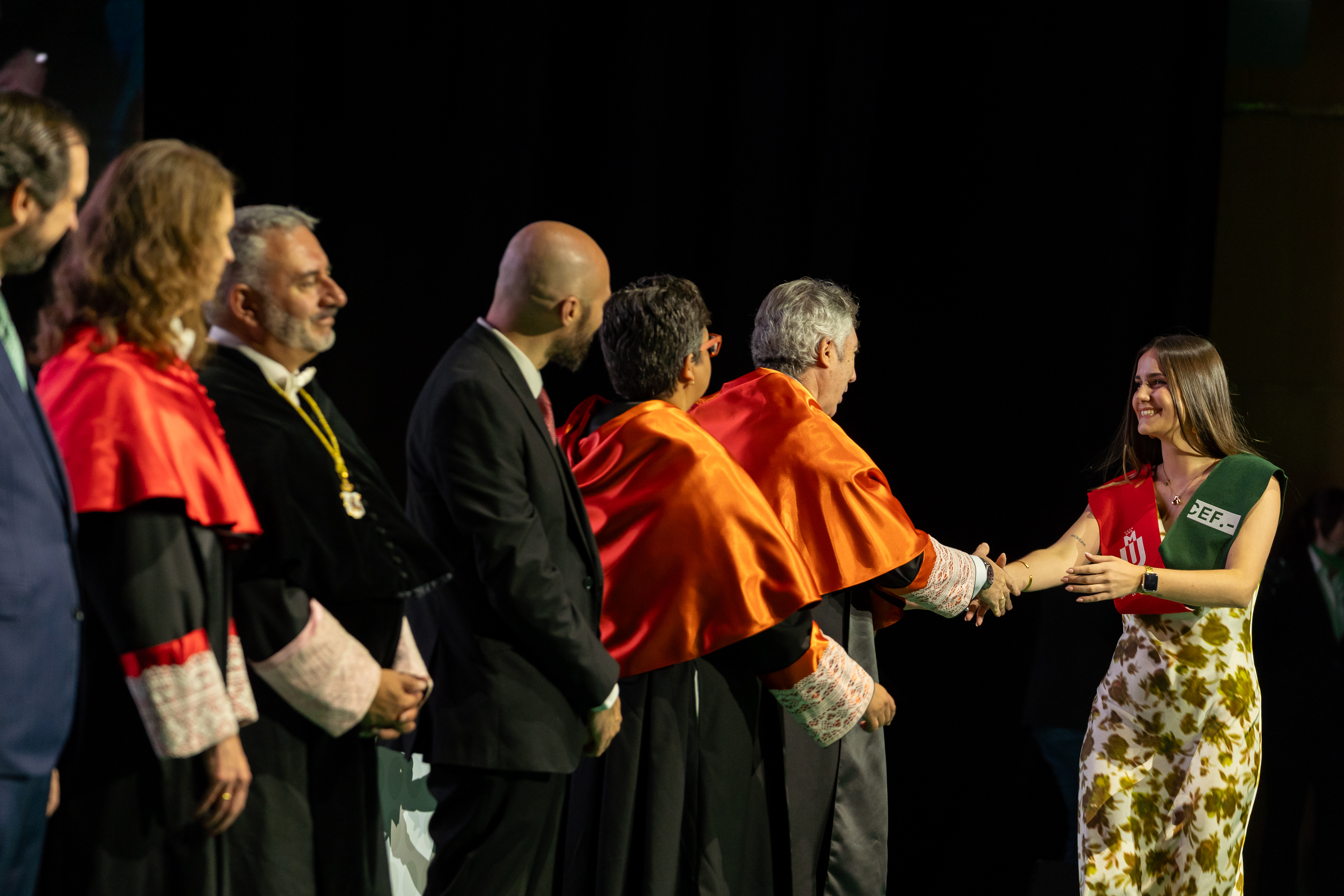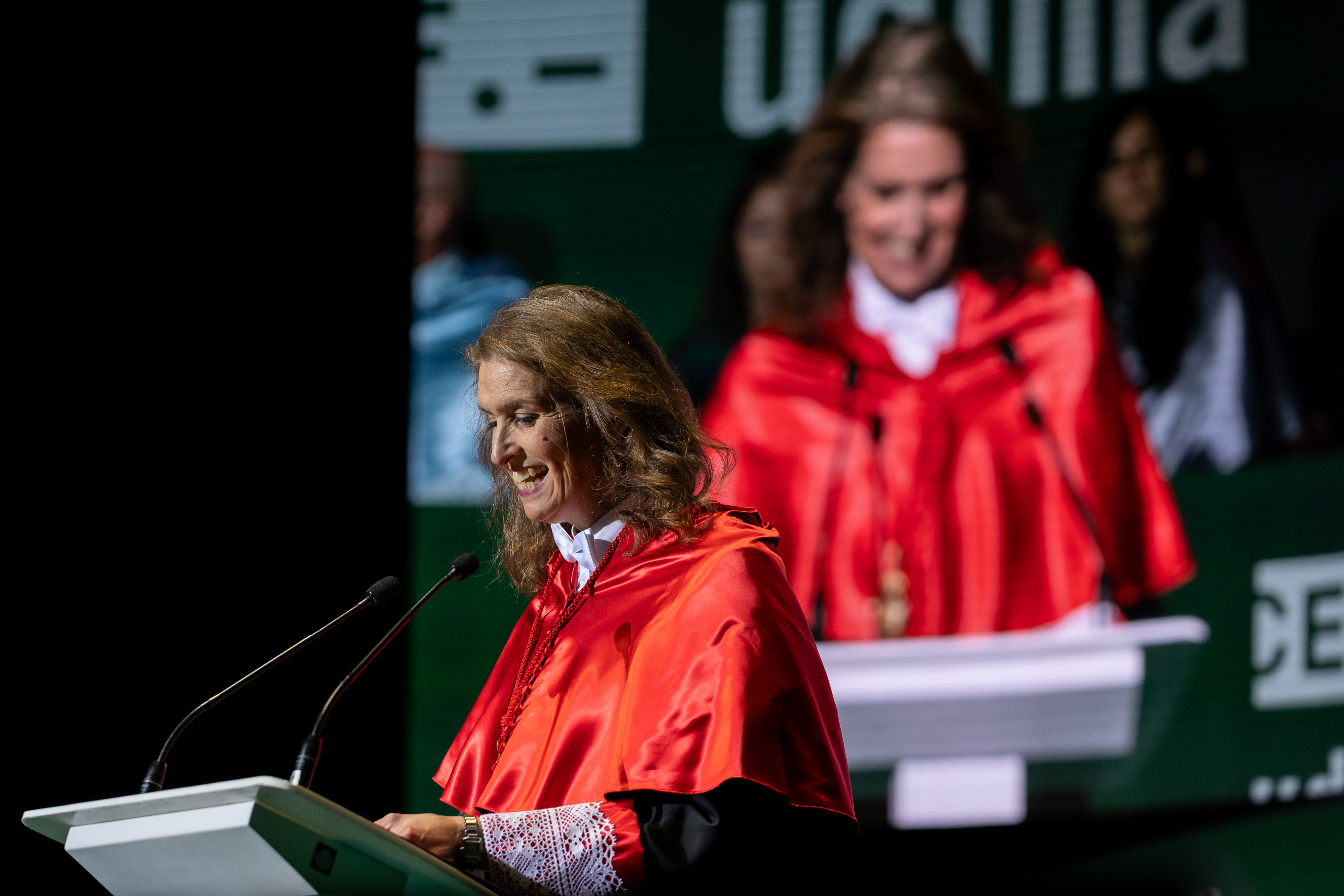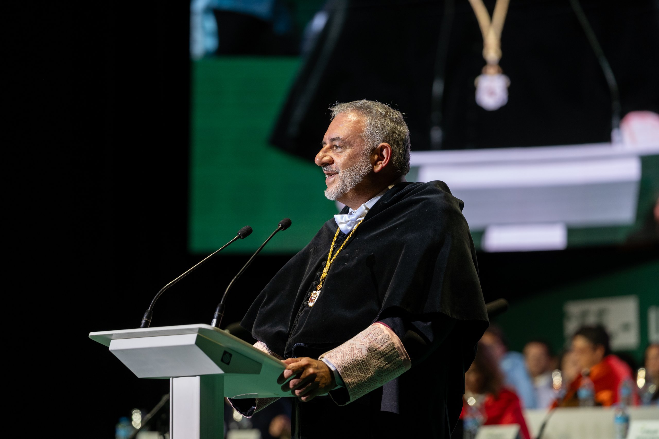 El rector de la universidad tomó la palabra para destacar valores fundamentales como la constancia, el espíritu de sacrificio, la ilusión, la búsqueda de la verdad, la motivación o la confianza que, ejemplificó con una entrañable metáfora: “Cuando sueltas a un niño pequeño al aire y se ríe… es porque sabe que le cogerás de nuevo… Eso es confianza. Habéis confiado en nosotros, y nosotros confiamos en el valor que aportáis a la sociedad”.
