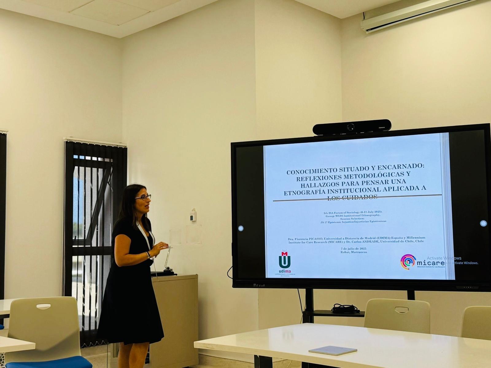 La Dra. Florencia Picasso, profesora e investigadora del área de Sociología de CEF.- UDIMA, miembro del Grupo para el Estudio de la Sociedad y la Política en un Mundo Global y del Millennium Institute for Care Research (MICARE), participó en este destacado encuentro internacional con una ponencia centrada en los cuidados desde una perspectiva crítica y feminista.