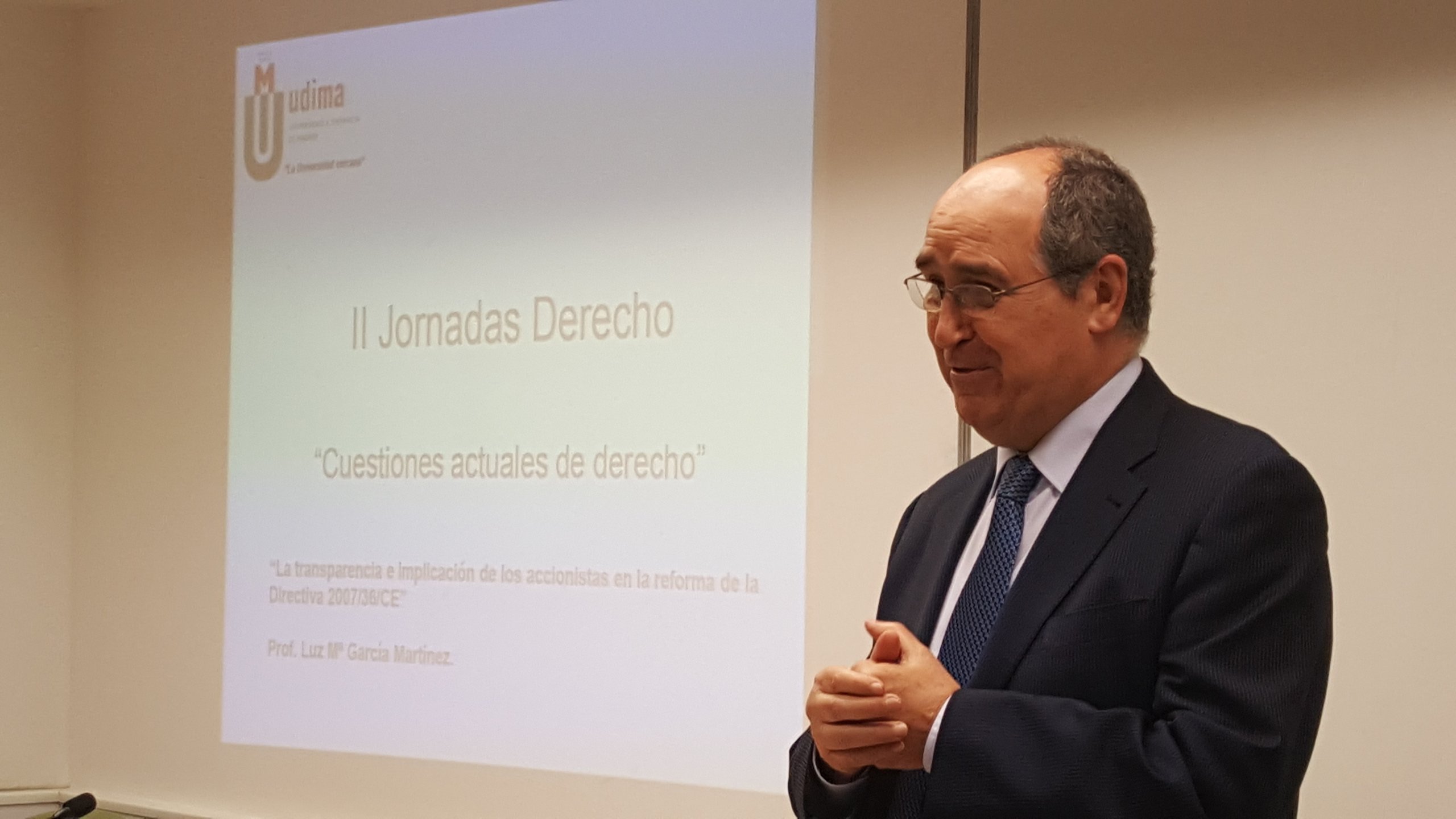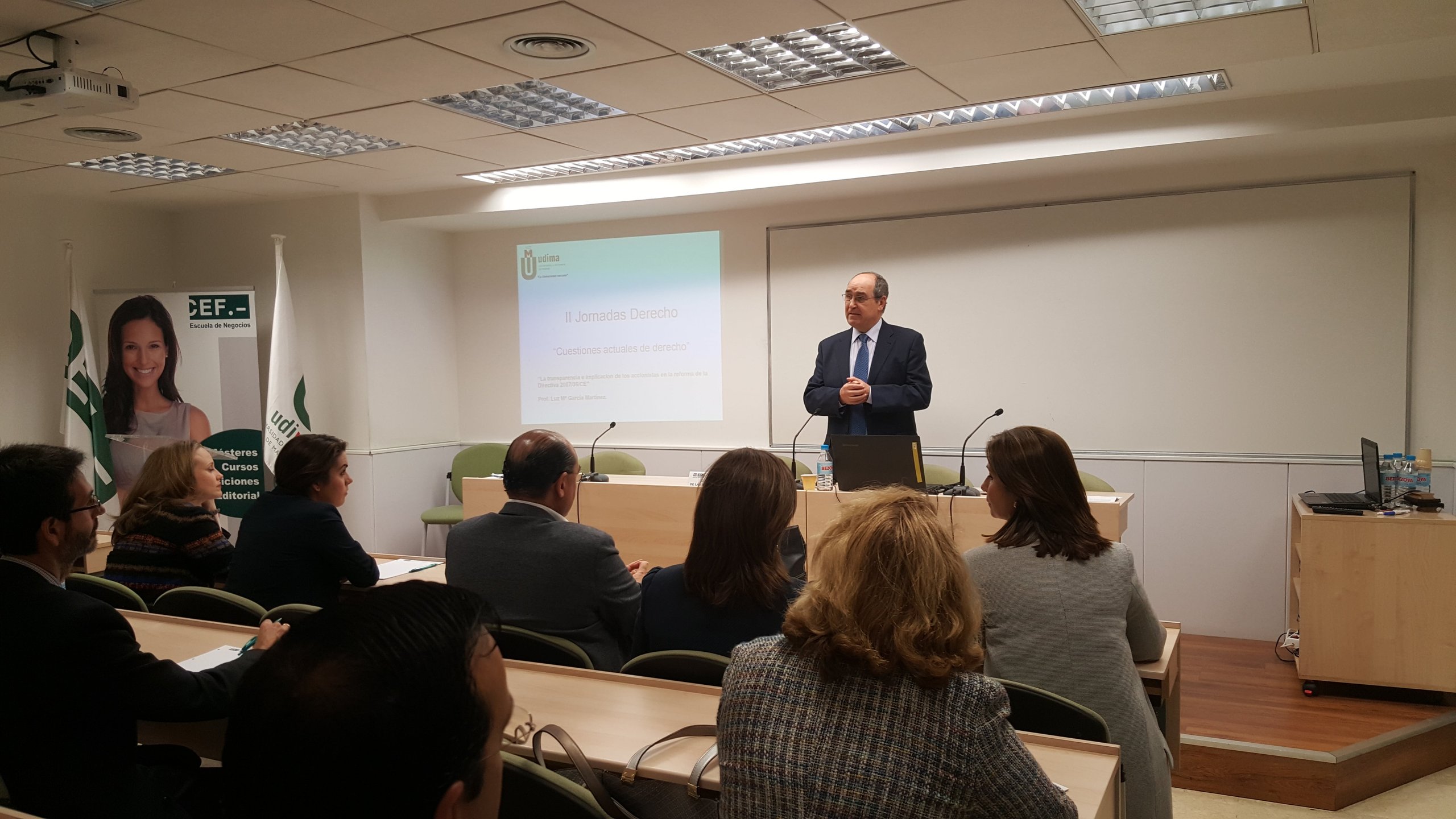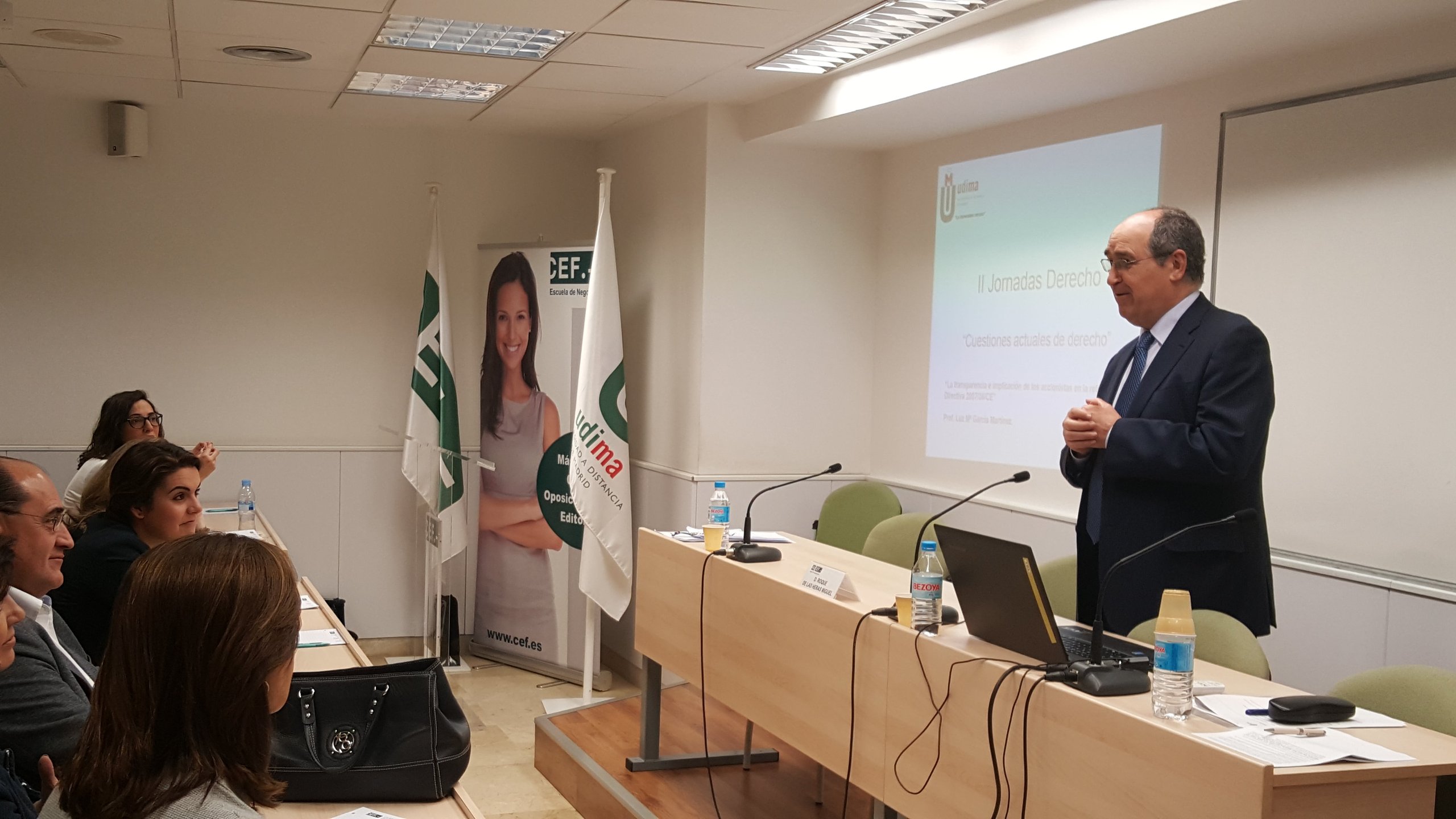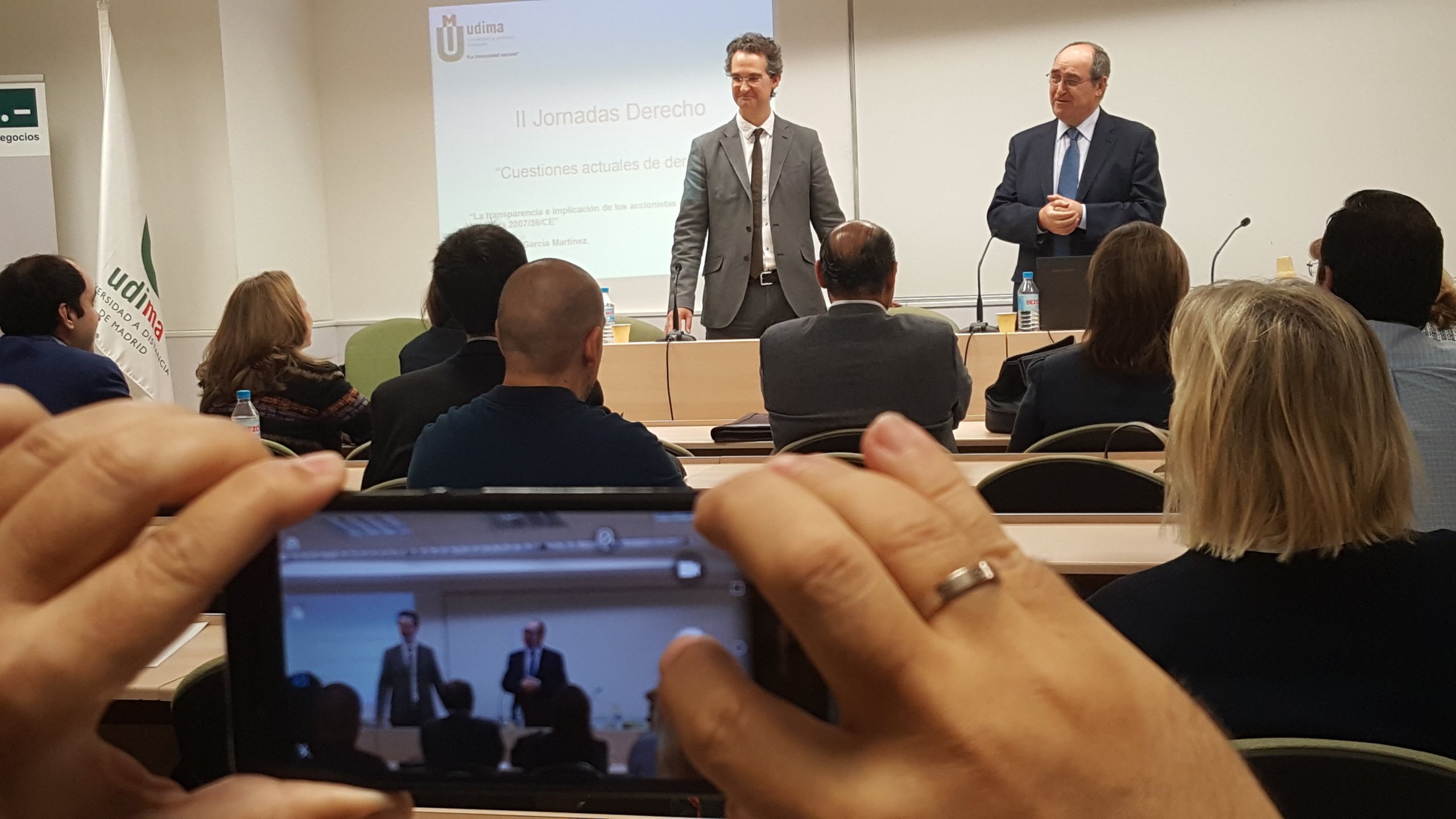 Desde ‘La inconstitucionalidad de la plusvalía municipal en los casos de transmisiones con pérdidas’ o, ya citada, ‘La nueva normativa de protección de datos’, pasando por las ‘Novedades jurisprudenciales sobre premio por hallazgo casual de objetos arqueológicos’, hasta ‘El tratamiento jurídico de las cláusulas suelo’. ‘Cuestiones actuales de Derecho’ abordadas en la II Jornada de Derecho de la UDIMA que se celebró este viernes en la madrileña sede del Grupo CEF.- UDIMA y que fue inaugurada por el presidente de la institución académica, Roque de las Heras.