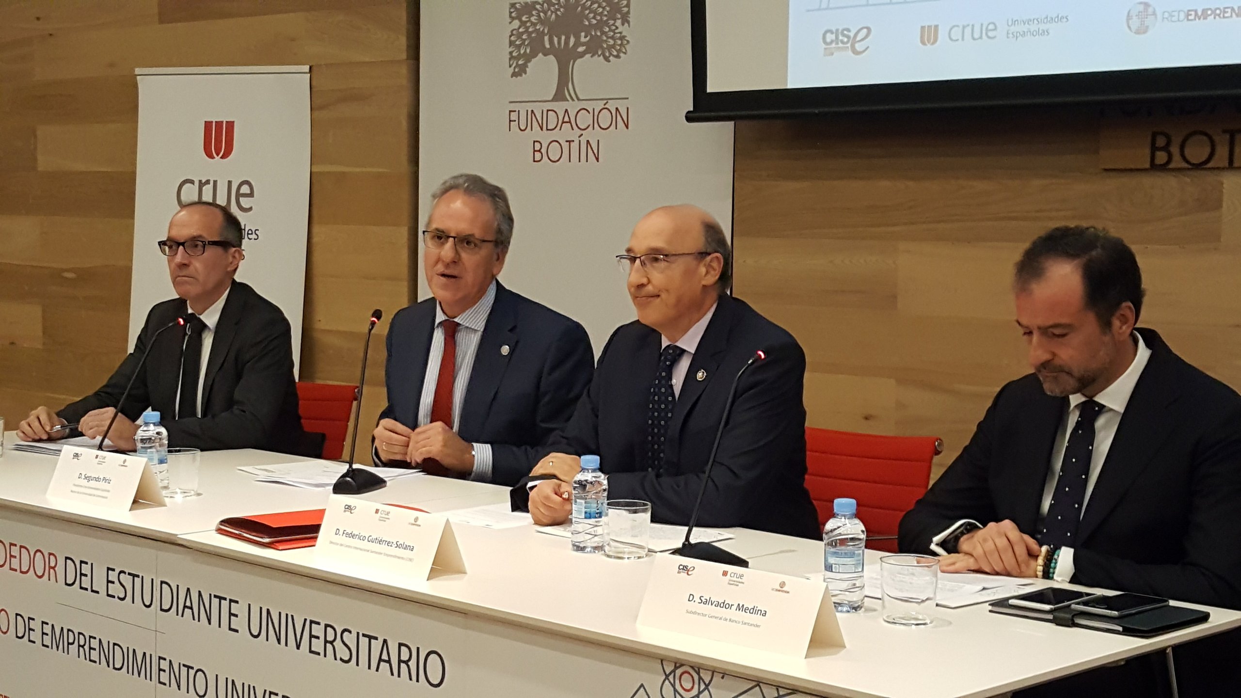 En la presentación del informe participaron Segundo Píriz, presidente de Crue Universidades Españolas; Salvador Medina, subdirector general de Banco Santander y director global institucional y de impacto social de Santander Universidades; Senén Barro, director general de RedEmprendia; Federico Gutiérrez-Solana, director del Centro Internacional Santander Emprendimiento (CISE); y la propia Maribel Guerrero, Investigadora principal del Observatorio.