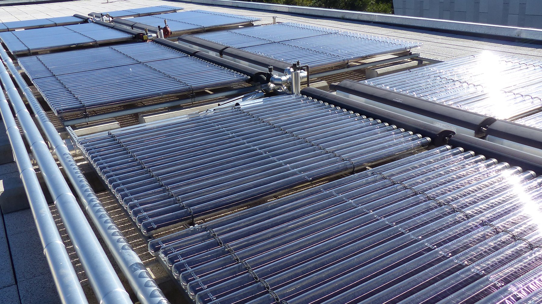 La instalación solar térmica se compone de un circuito primario y otro secundario. El circuito primario tiene 14 colectores de 20 tubos de vacío cada uno de circulación directa, configurados en 7 series de dos colectores en paralelo. El sistema de disipación de calor, se realiza mediante bypass de enfriamiento habilitado por una válvula de 3 vías motorizada y aerotermo.