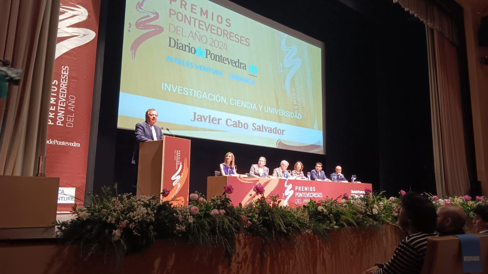 La ciudad de Pontevedra se volcó este miércoles para homenajear, en un emotivo acto y con la participación de cientos de invitados, al doctor Javier Cabo Salvador, director del Departamento de Ciencias de la Salud y catedrático de Gestión Sanitaria en la Universidad a Distancia de Madrid, UDIMA, a quien se distinguió como ‘Pontevedrés del Año en Investigación, Ciencia y Universidad’.
