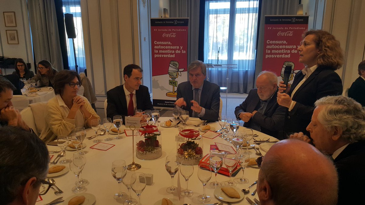 Como colofón, la Jornada se completó con una comida en la que participó el ministro de Educación y portavoz del Gobierno español, Iñigo Méndez de Vigo, quien contestó a su término las preguntas de los periodistas congregados en torno a asuntos de la actualidad general.