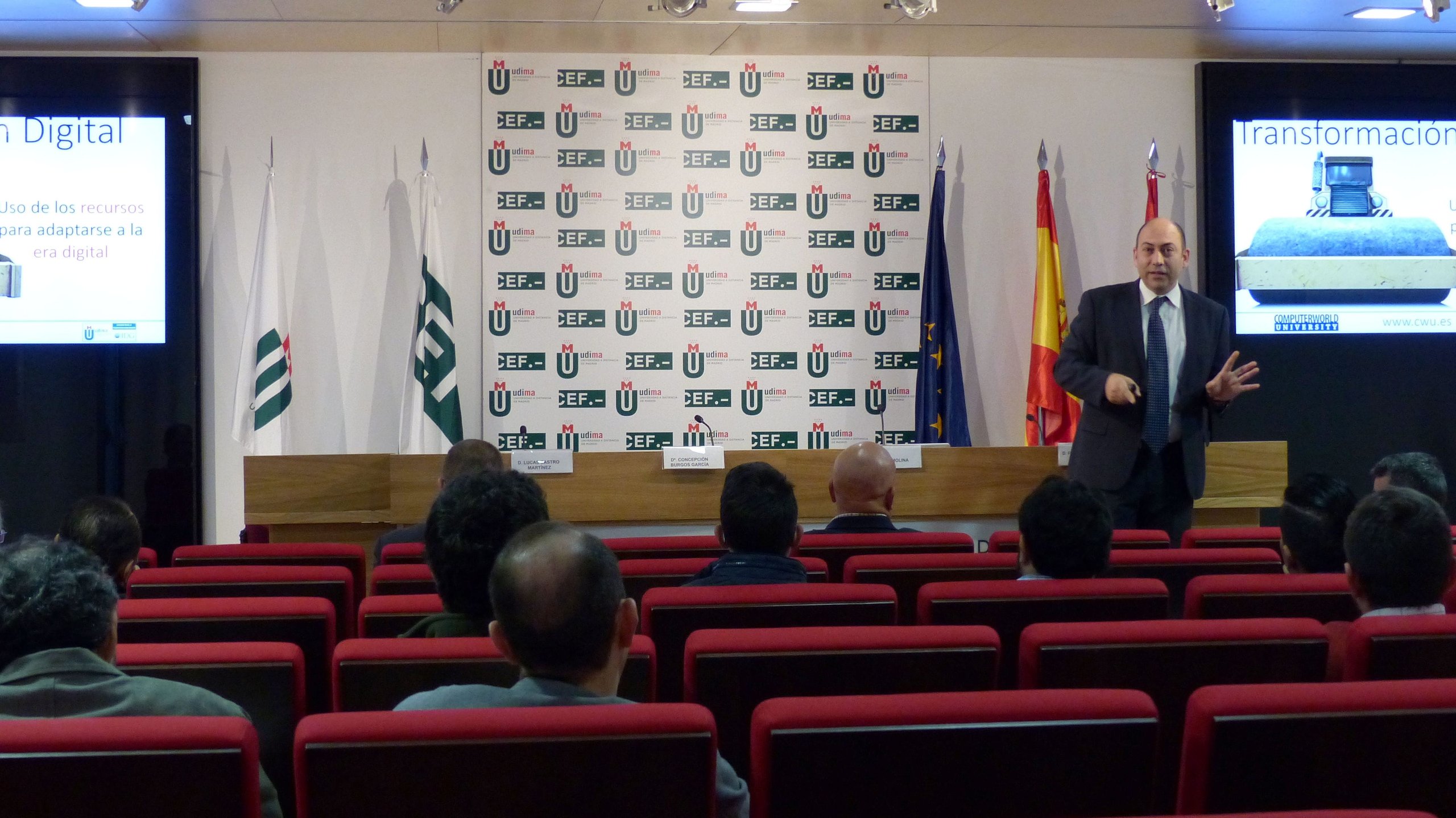 El presente y futuro de los coches eléctricos fue abordado por el profesor de la UDIMA, Alberto Martínez, quien presentó como paradigma los modelos de Nissan Motor Corporation. Del Modelo de Aprendizaje por Refuerzo Aplicado a la Navegación Aérea trató el doctor José María Barreiro Sorrivas, de la Universidad Politécnica de Madrid. Por cuenta del profesor de la UDIMA y director de Marketing y Desarrollo de Negocio en el Grupo Reacciona, Joaquín Danvila, corrió una exposición 'La Digitalización de la relación con el cliente'.