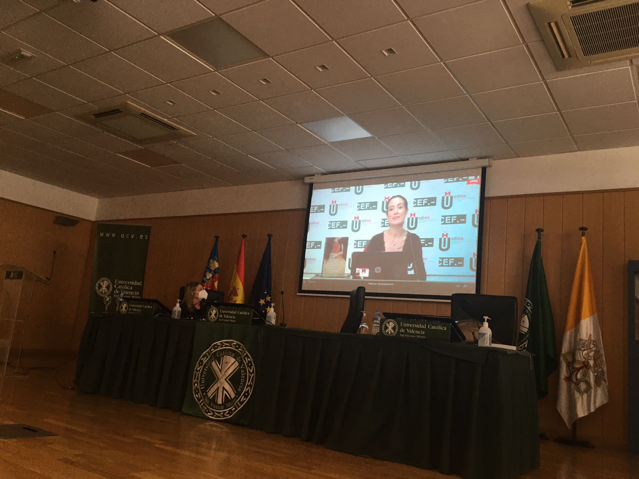 A Laura la acompañó también en otra ponencia la profesora e historiadora de la UDIMA María Lara, a quienes desde el Campus de Valencia dio paso a sus intervenciones en el taller de libros la profesora de la Universidad Cardenal Herrera-CEU Elvira García de Torres.