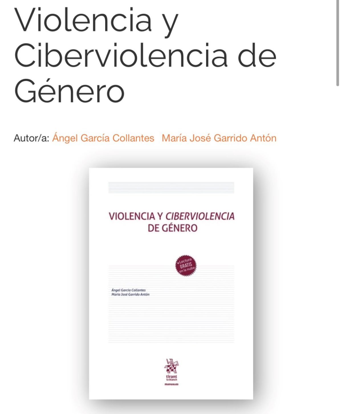 Violencia y ciberviolencia de género’ (Tirant Editorial) es el ensayo que acaban de lanzar al mercado los profesores del Grado en Criminología de la Universidad a Distancia de Madrid, UDIMA, Ángel García Collantes y María José Garrido, en el que se pone el acento en cómo las nuevas tecnologías han generado una muevo marco de violencia contra la mujer.