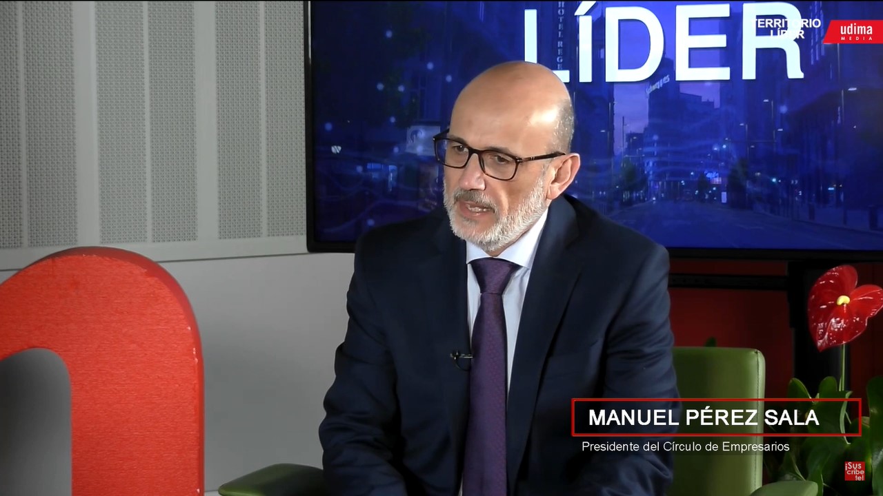 Manuel Pérez-Sala (Cáceres, 1962) defiende la figura del empresario en la última edición del programa 'Territorio Líder' con el periodista Graciano Palomo, desde los platós del campus de la UDIMA en Collado Villalba. Un rol que conoce bien como presidente del Círculo de Empresarios (desde 2021) y que, frente a las críticas que reciben algunos incluso desde el propio Gobierno, considera un agente "benefactor" de la sociedad. Para él, el empresario asume la "responsabilidad" de "contribuir a crear riqueza y bienestar" en la comunidad a la que pertenece.