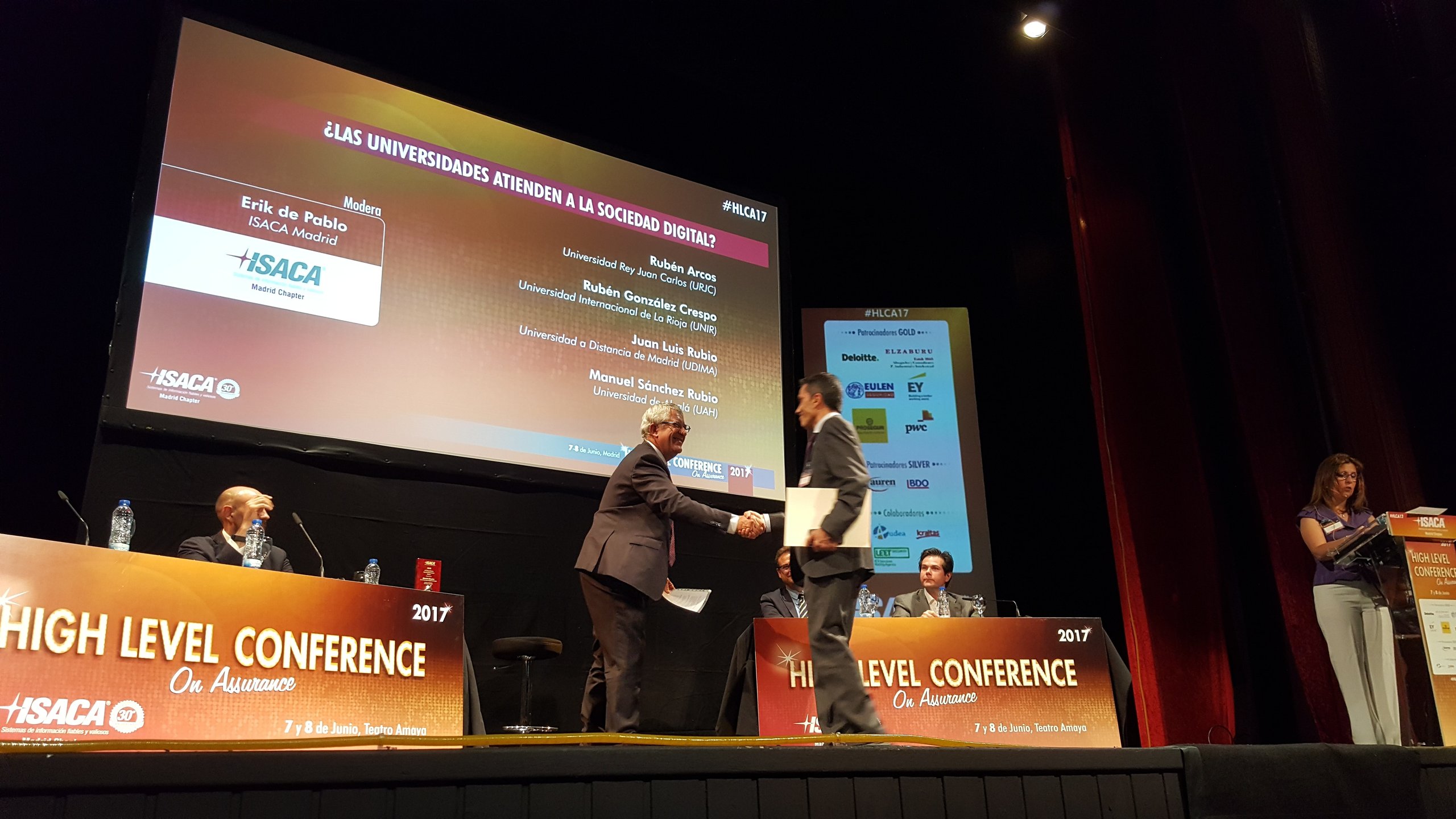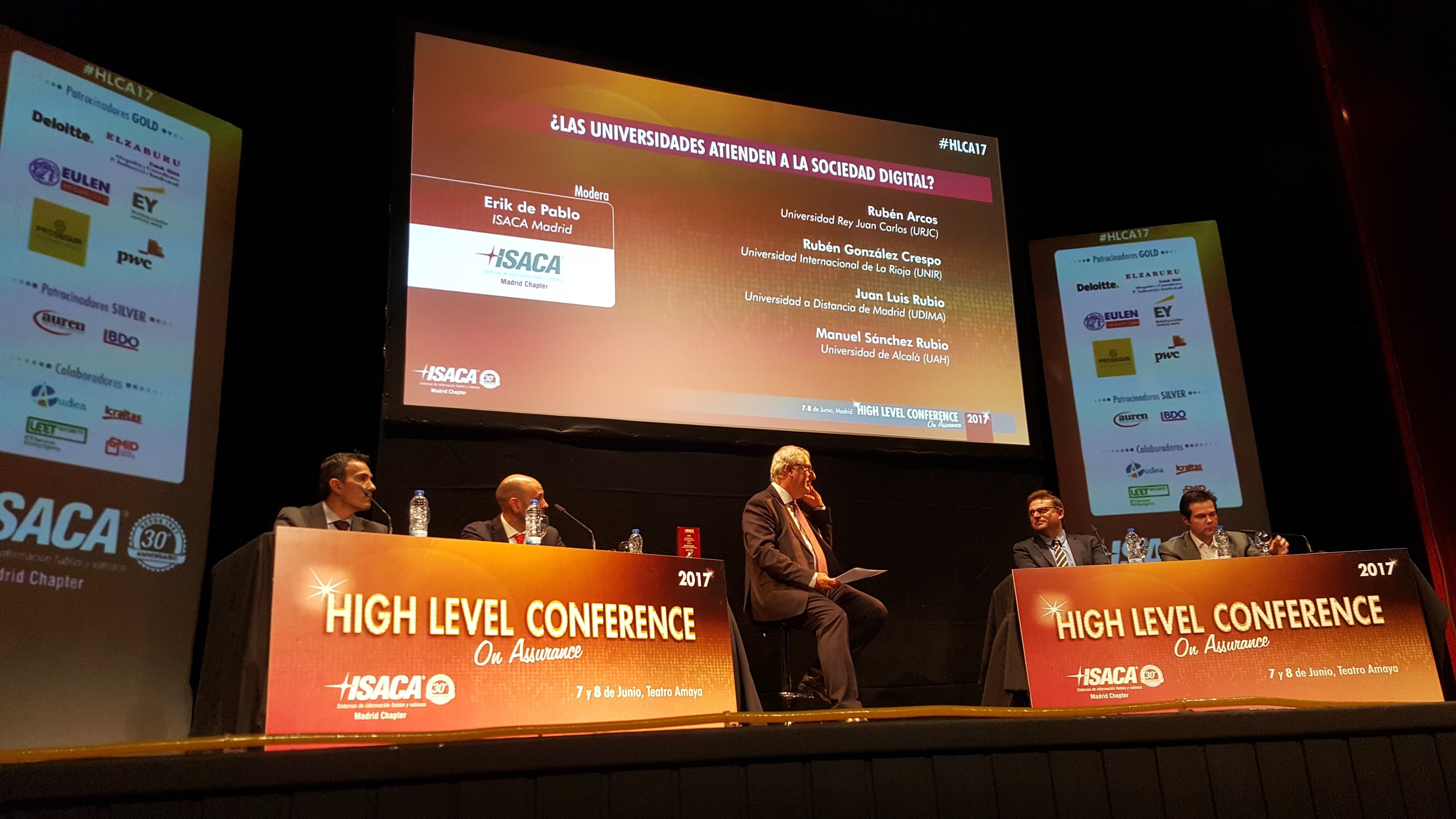 Este fue el diagnóstico a corto y medio plazo en el que coincidieron los representantes de cuatro universidades reunidos en la mesa redonda titulada ‘¿Atienden las universidades a la sociedad digital?’, en el marco de la High Level Conference on Assurance 2017, convocada por ISACA Madrid, y que, moderada por Erik de Pablo, su research director, contó con Rubén González, director de la Escuela Superior de Ingeniería y Tecnología de la UNIR; Rubés Arcos, subdirector de la Cátedra Servicios de Inteligencia y Sistemas Democráticos de la URJC; Manuel Sánchez, director de la Cátedra DARS ‘Ciberinteligencia’ de la UAH, y Juan Luis Rubio, vicerrector de Universidad-Empresa de la UDIMA.