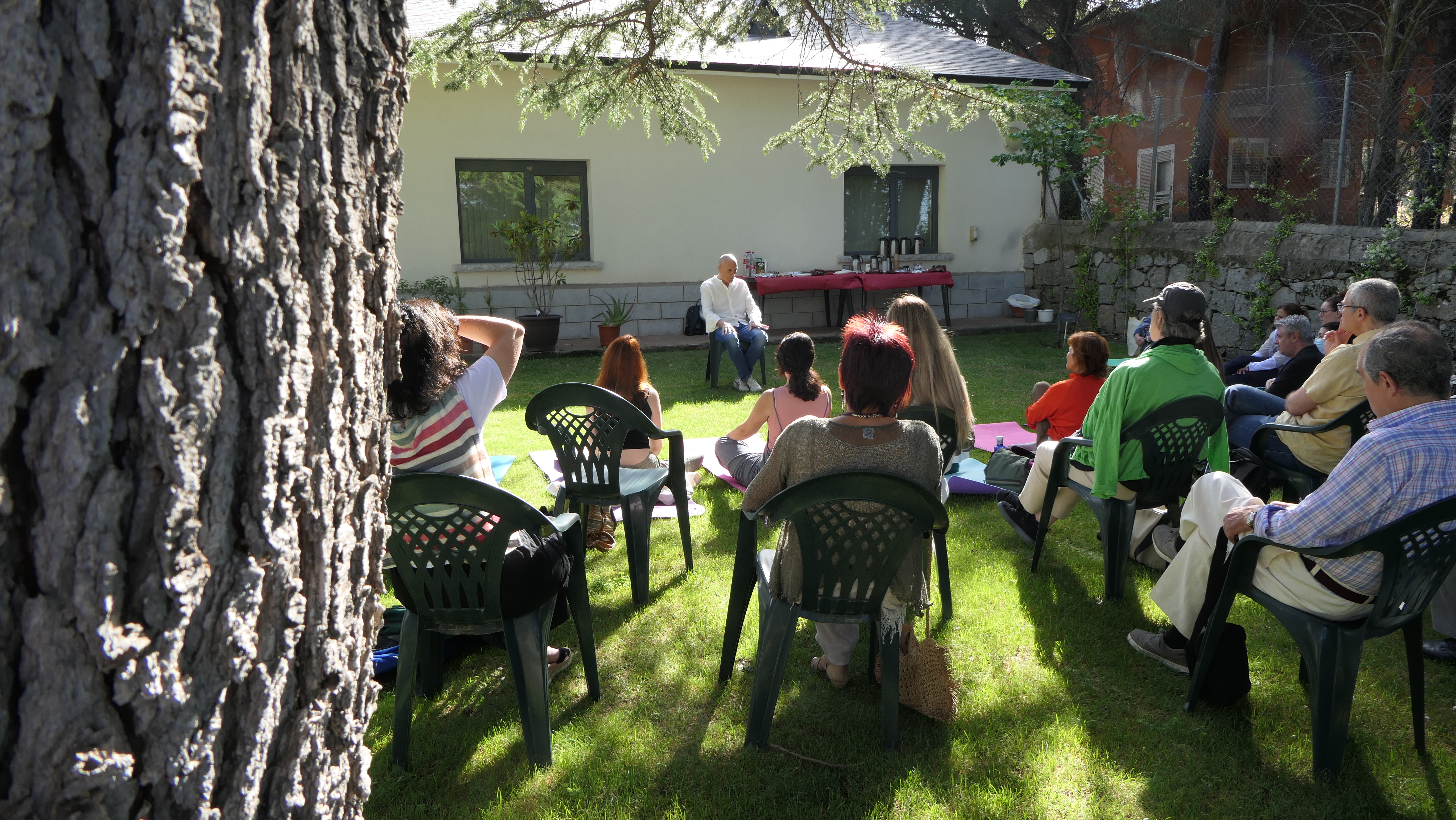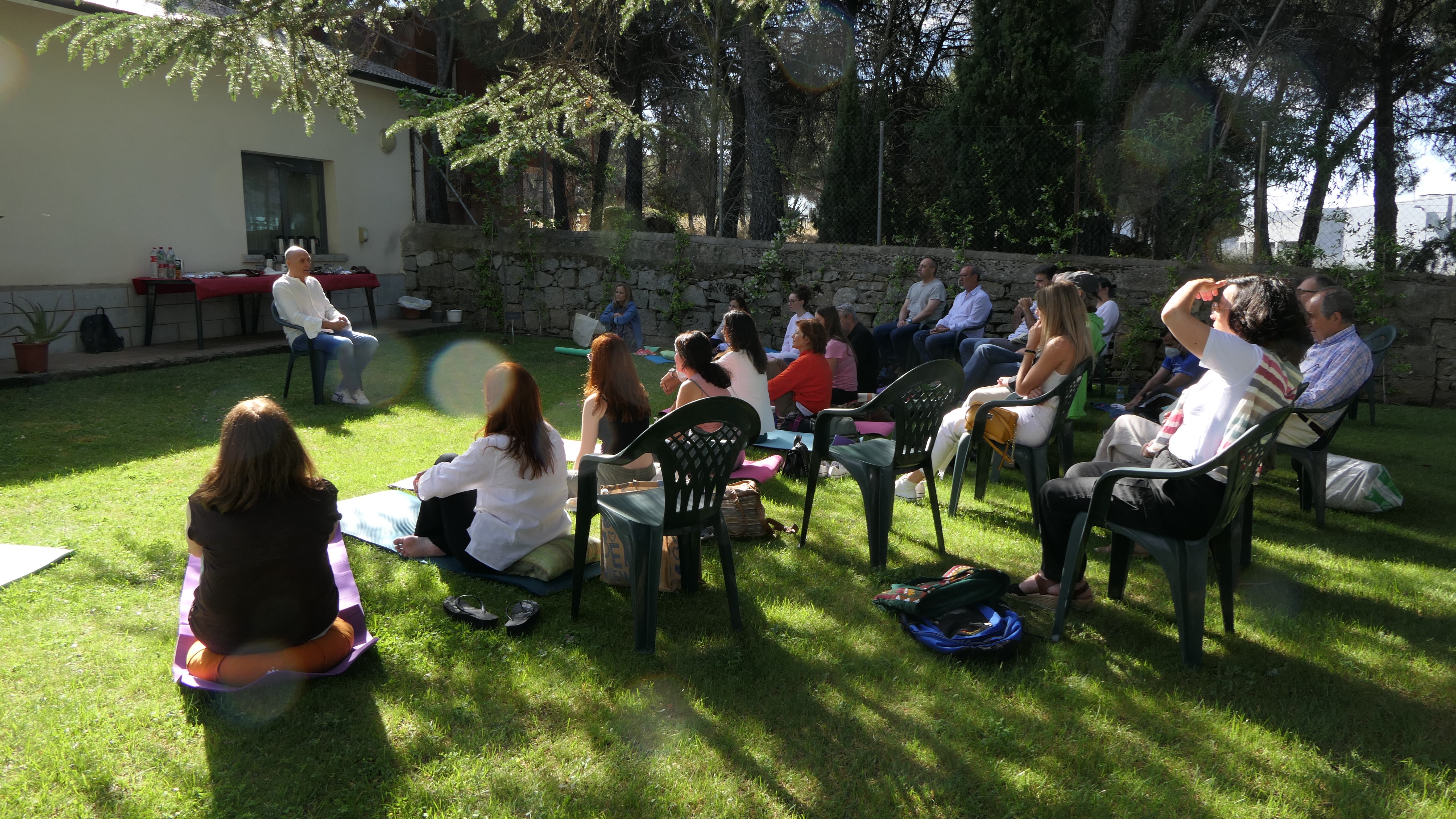 Durante esta jornada, con carácter extraordinario acompañó a Ángela de Las Heras y Pedro Laguna, profesores del curso en mindfulness, Lobsang Zopa, monje español, ordenado por Su Santidad el XIV Dalai Lama en Dharamsala, ‘India’.