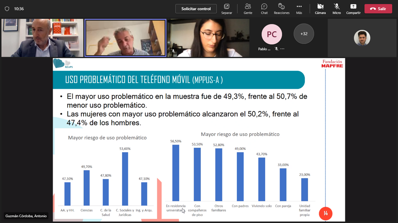 Entre los causantes y las consecuencias de este uso desproporcionado del smartphone hay un gran abanico de opciones, que la encuesta ha recogido no sólo por género o universidad, sino también por ramas del conocimiento. Si vivir en una residencia aumenta las probabilidades de encontrar un uso excesivo del teléfono, también aumenta si allí se estudia alguna carrera de la rama de Ciencias Sociales y Jurídicas.