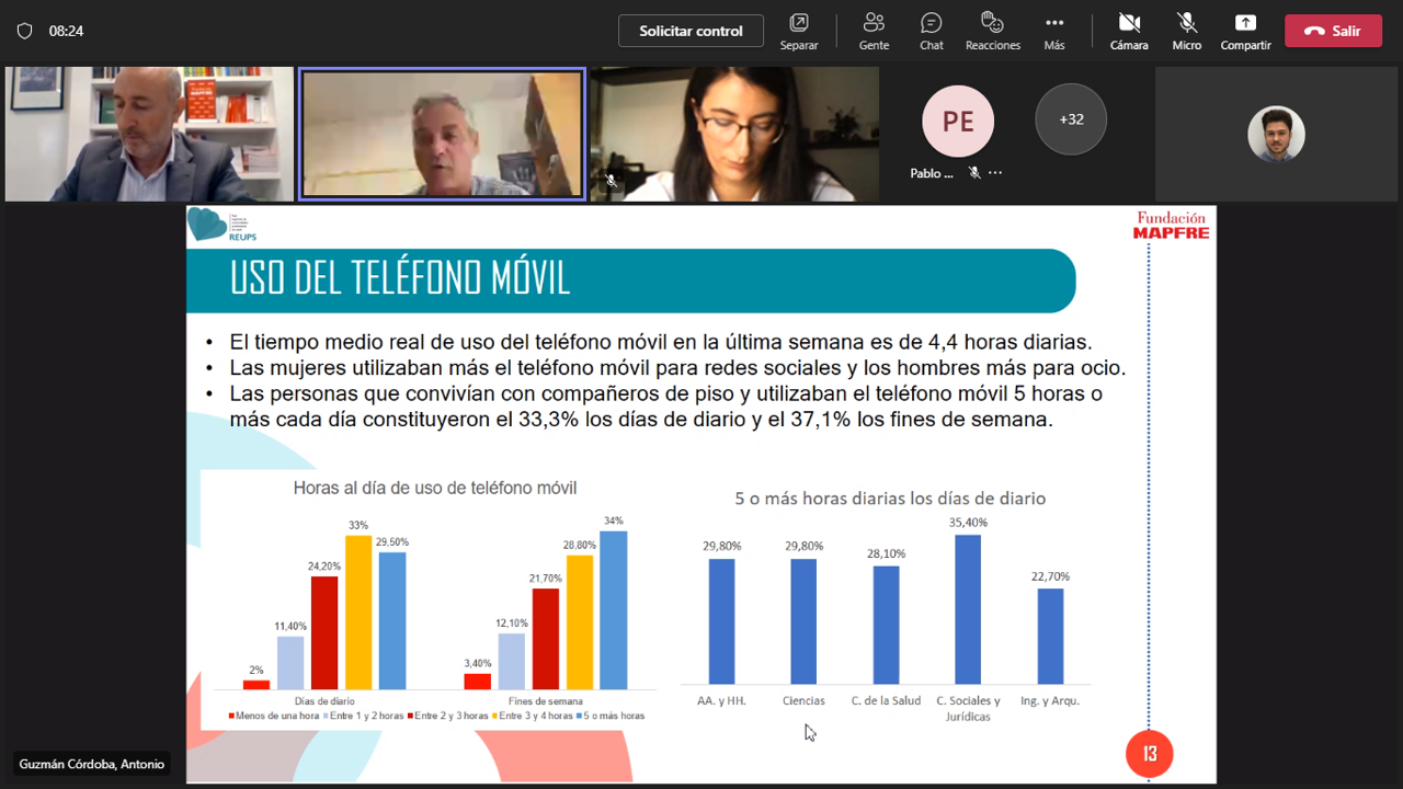 Lo usan cuatro horas diarias de media, especialmente los que viven con otros estudiantes. Casi un tercio de ellos se ha gastado 500 euros o más en el suyo. Es un complemento inseparable e indivisible de su rutina, especialmente a nivel social y de ocio. La Fundación Mapfre y la Red Española de Universidades Promotoras de Salud (REUPS) ha presentado este martes una radiografía, entre otros, del uso que hacen los universitarios españoles del teléfono móvil. Seis de cada diez dicen usarlo "para sentirse mejor".
