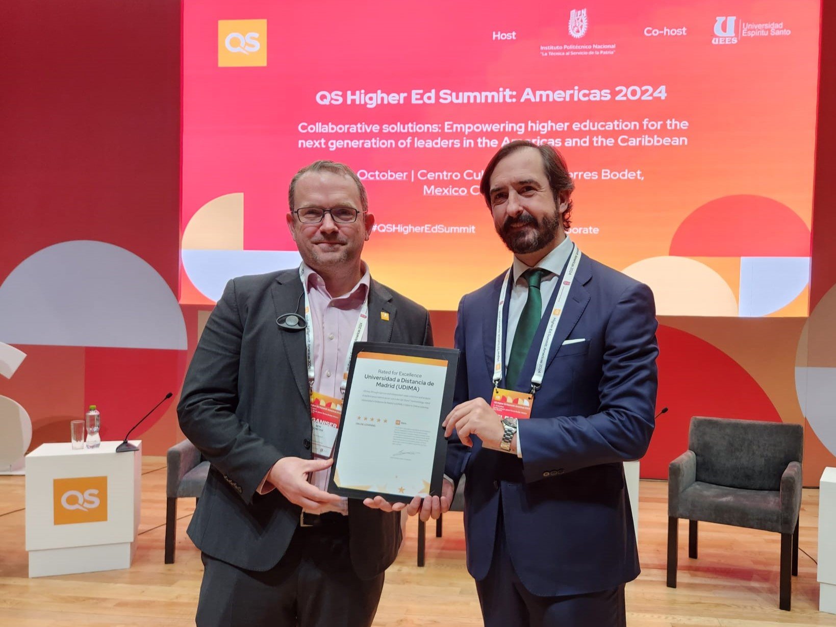 UDIMA recibe su certificado 'QS Stars' en la cumbre 'QS Higher Ed Summit: Americas 2024' en México