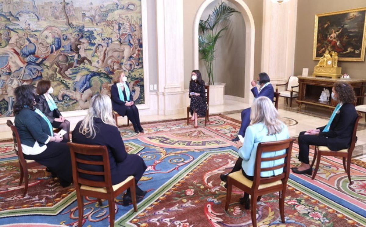 Doña Letizia recibió este miércoles en el Palacio de la Zarzuela a una representación de la junta directiva de la...
