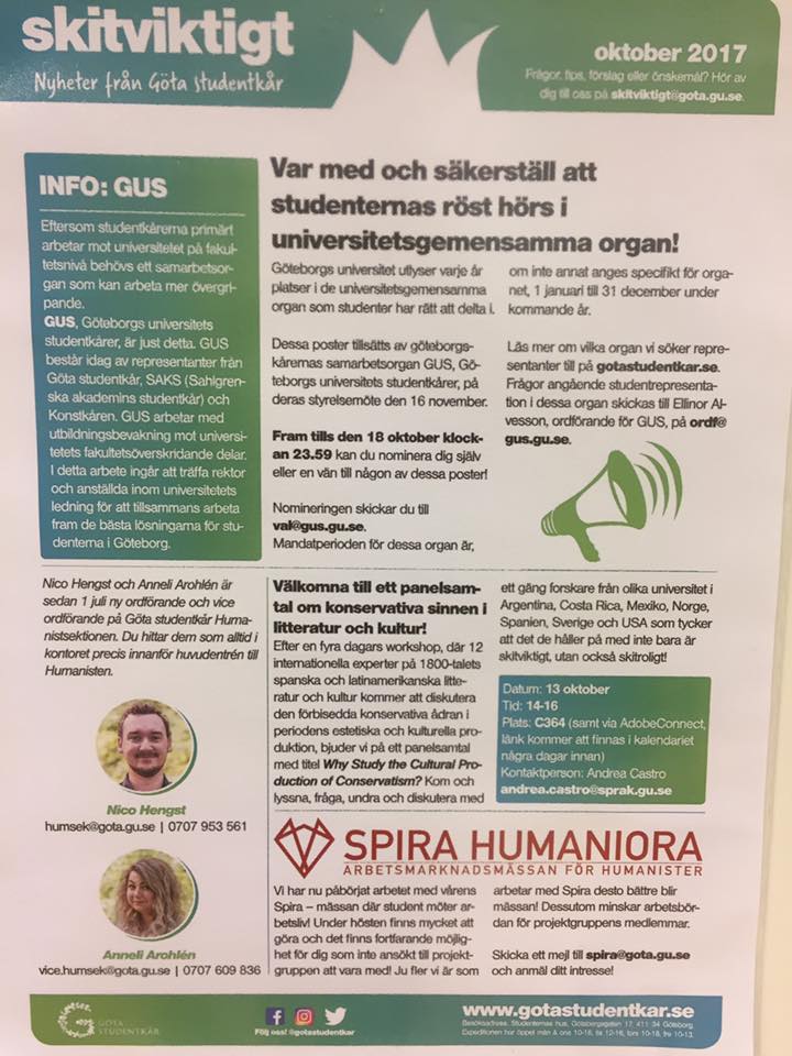 La última jornada acogió un panel en la Universidad de Gotemburgo al que asistieron profesores y alumnos y en el cual los investigadores explicaron por qué tiene interés y relevancia estudiar las sensibilidades conservadoras del siglo XIX, conectando este tema con el presente, al tiempo que dialogaron con el público sobre las distintas aportaciones de cada investigación particular.
