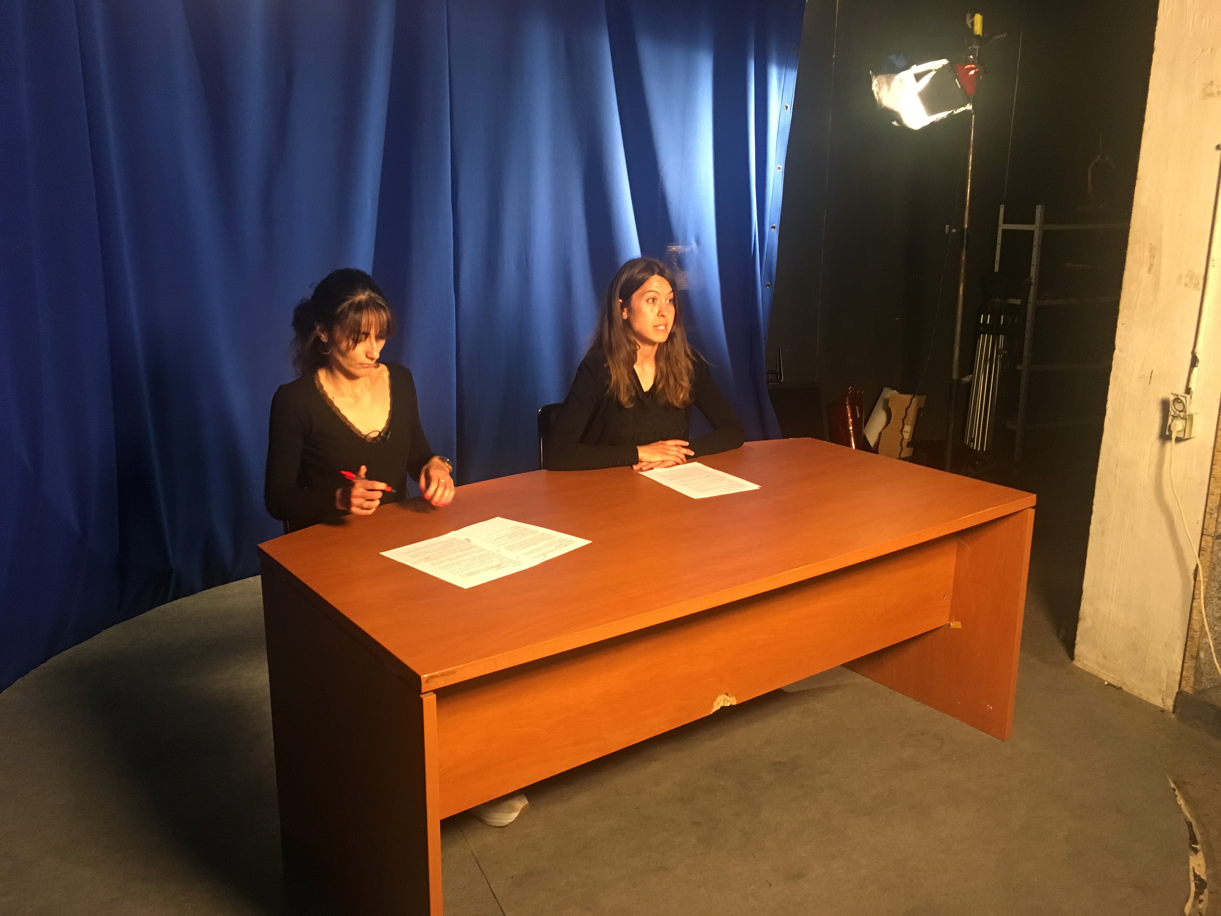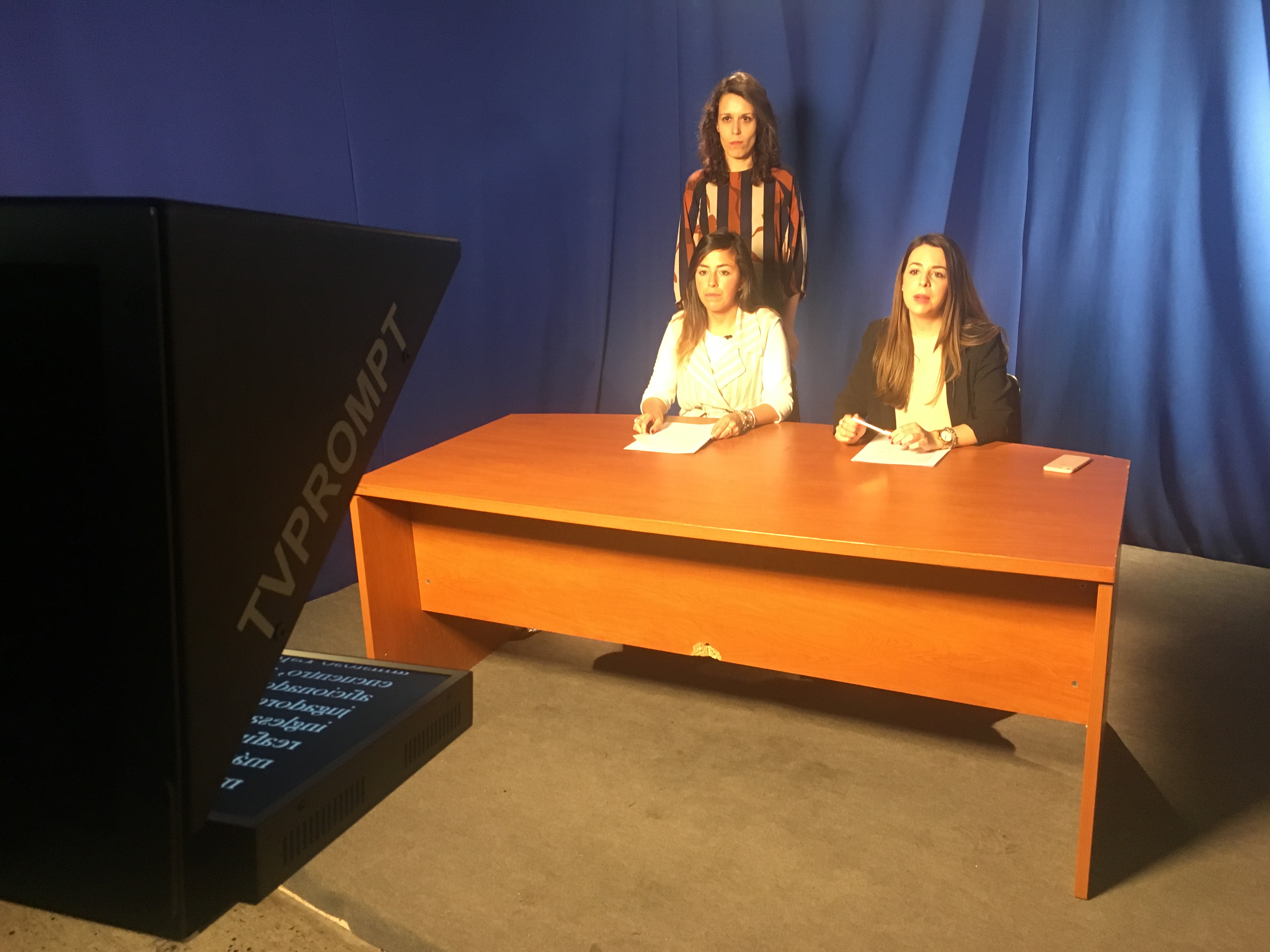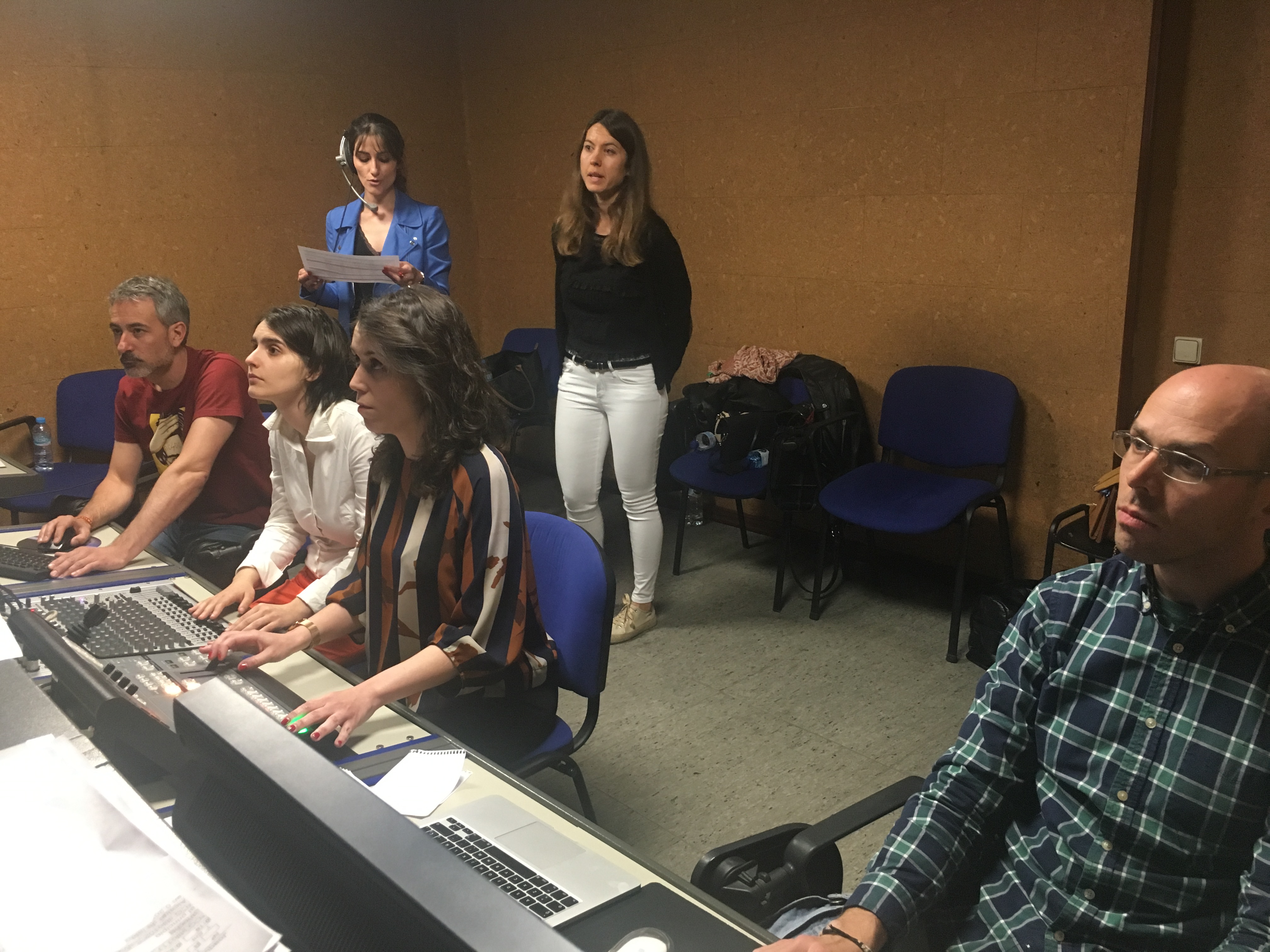Para ello, se les explicó el trabajo que es necesario acometer en el estudio/plató, como la preparación de la iluminación, las cámaras, el autocue, la microfonía, la pantalla de croma, los sets virtuales y, sobre todo, el trabajo en el control de realización, con sus diferentes roles: el de realizador, ayudante de realización, técnico de VTR, mixer, técnico de sonido y tituladora, que luego asumieron todos y cada uno de ellos.