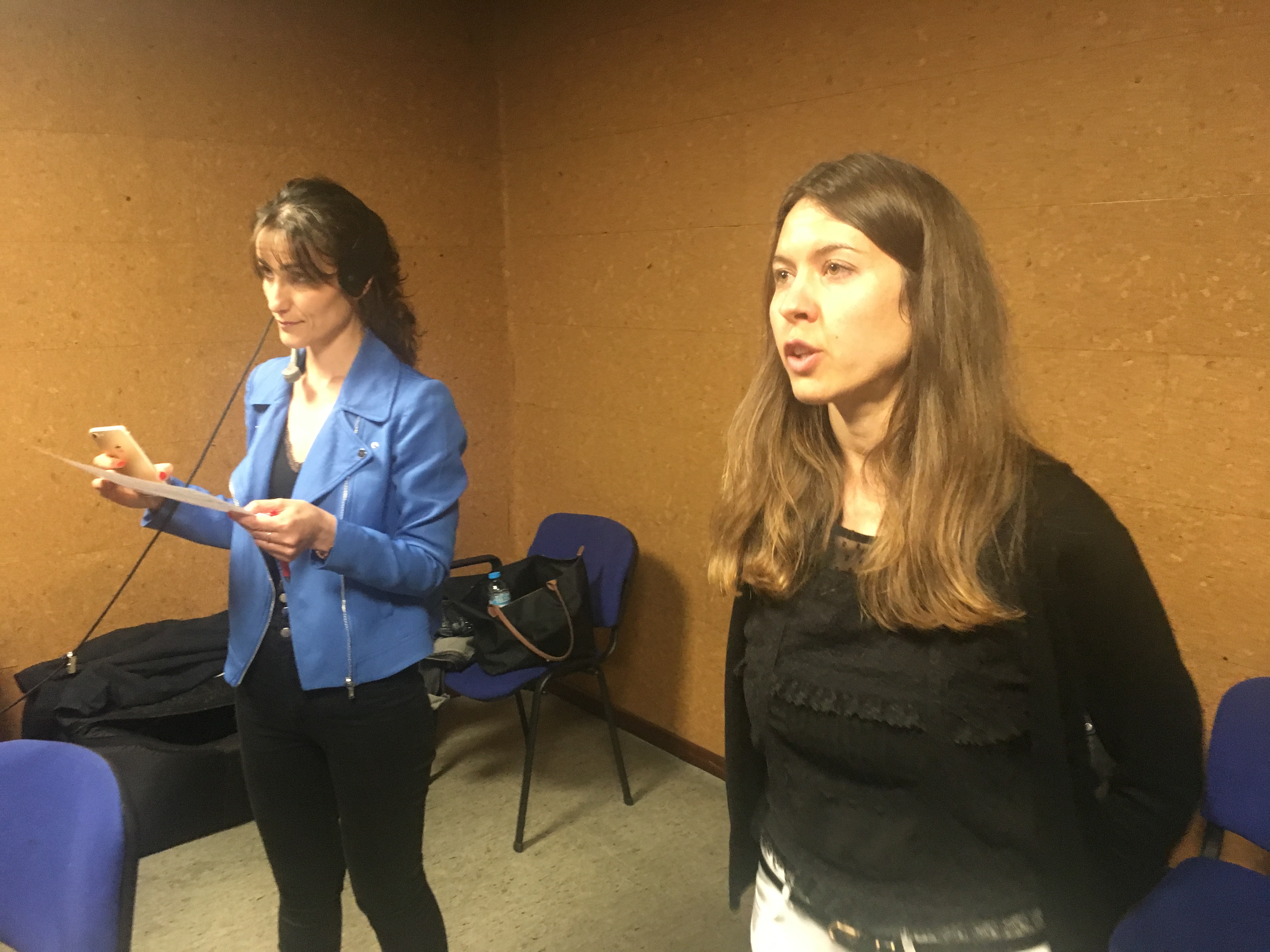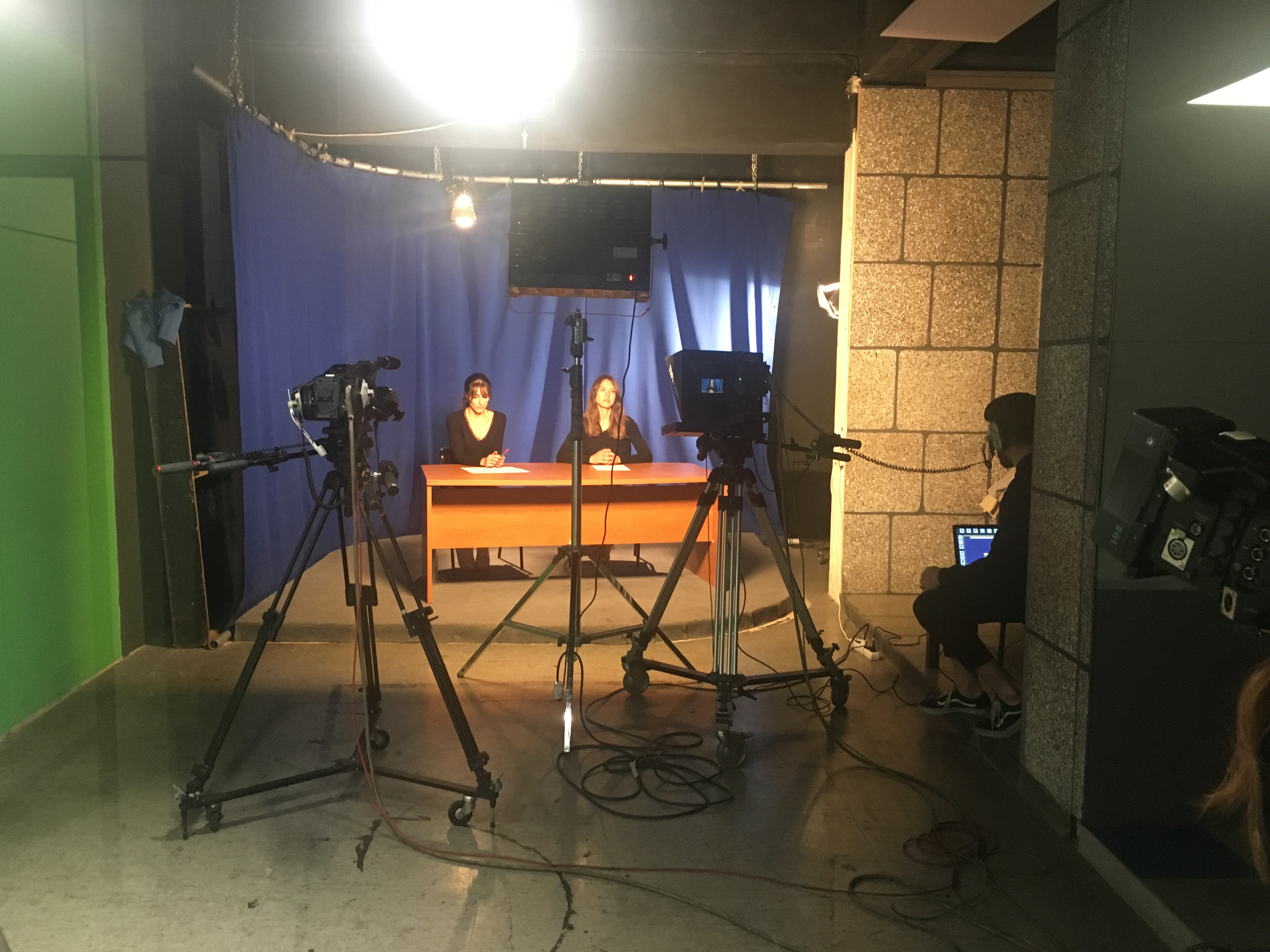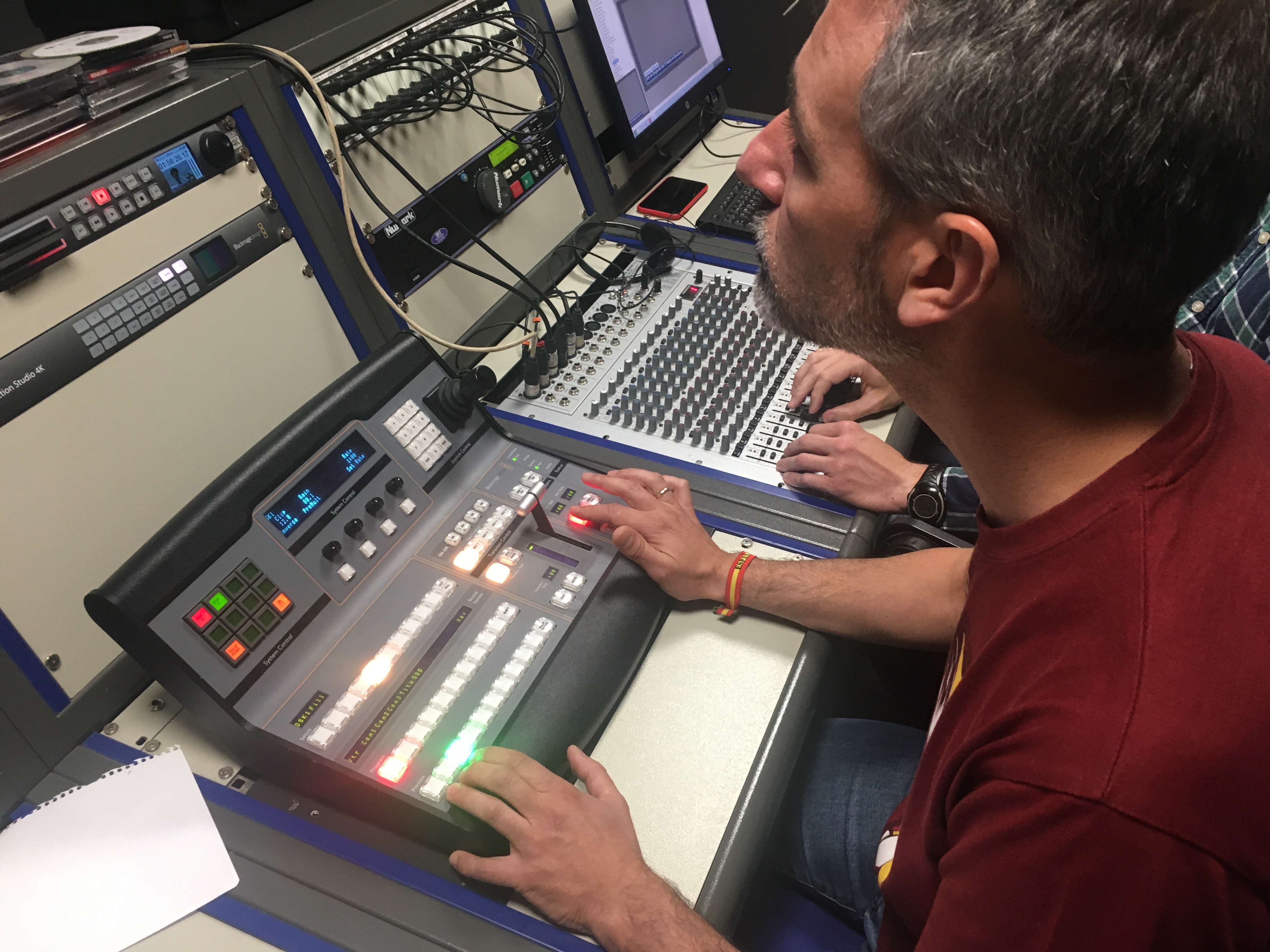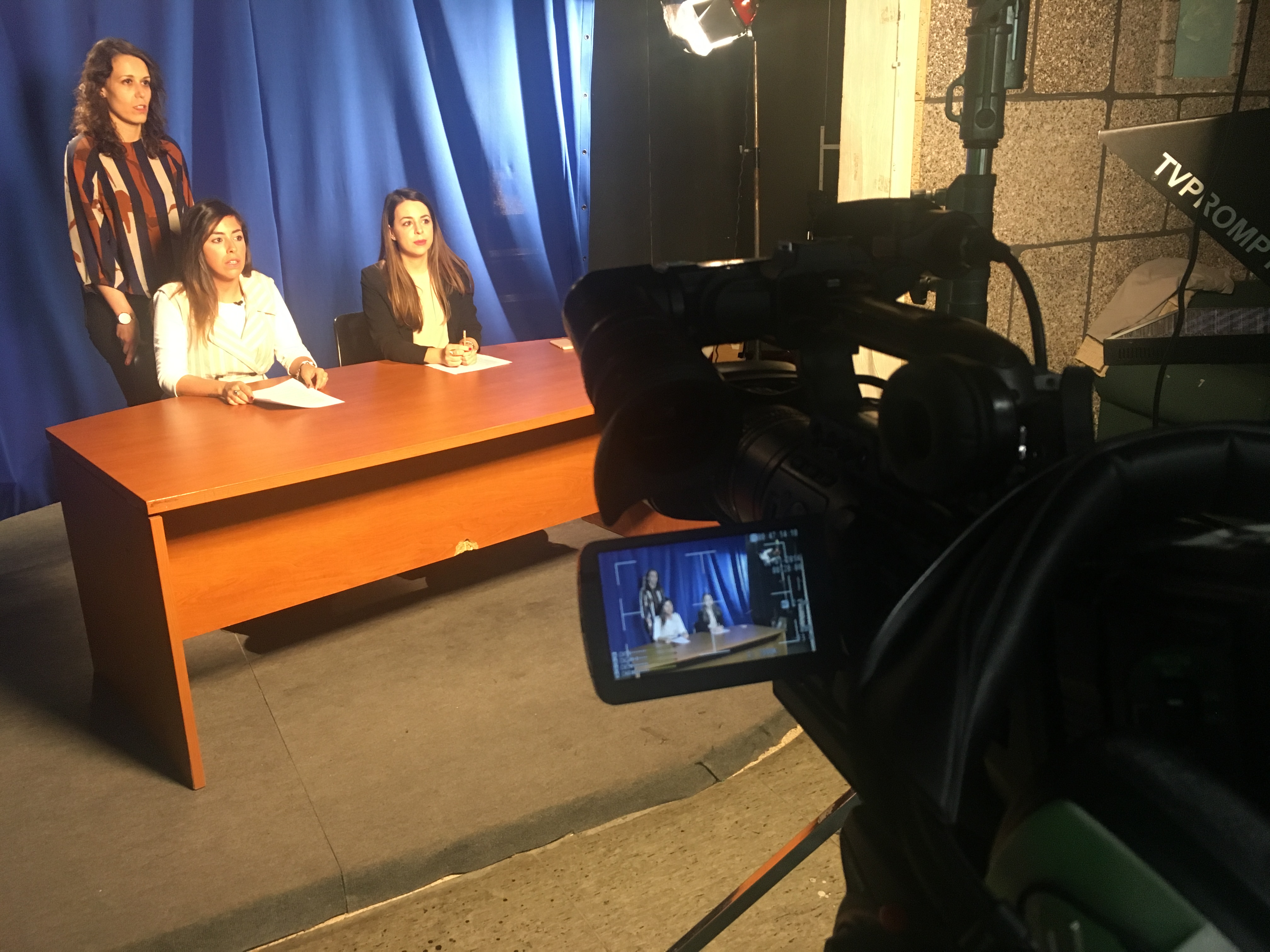 Para ello, se les explicó el trabajo que es necesario acometer en el estudio/plató, como la preparación de la iluminación, las cámaras, el autocue, la microfonía, la pantalla de croma, los sets virtuales y, sobre todo, el trabajo en el control de realización, con sus diferentes roles: el de realizador, ayudante de realización, técnico de VTR, mixer, técnico de sonido y tituladora, que luego asumieron todos y cada uno de ellos.