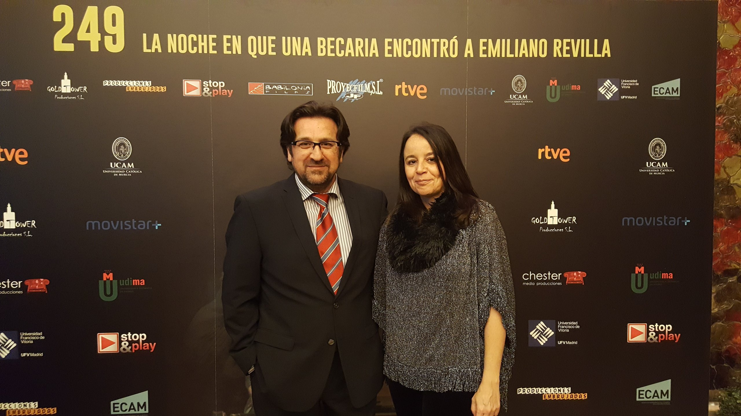 El madrileño cine Palafox fue este miércoles el escenario del exitoso preestreno de la película ‘249, La noche en que una becaria encontró a Emiliano Revilla’, dirigida por Luis María Ferrández González y producida por Miguel Ángel Poveda Criado, ambos profesores de la Universidad a Distancia de Madrid (UDIMA).