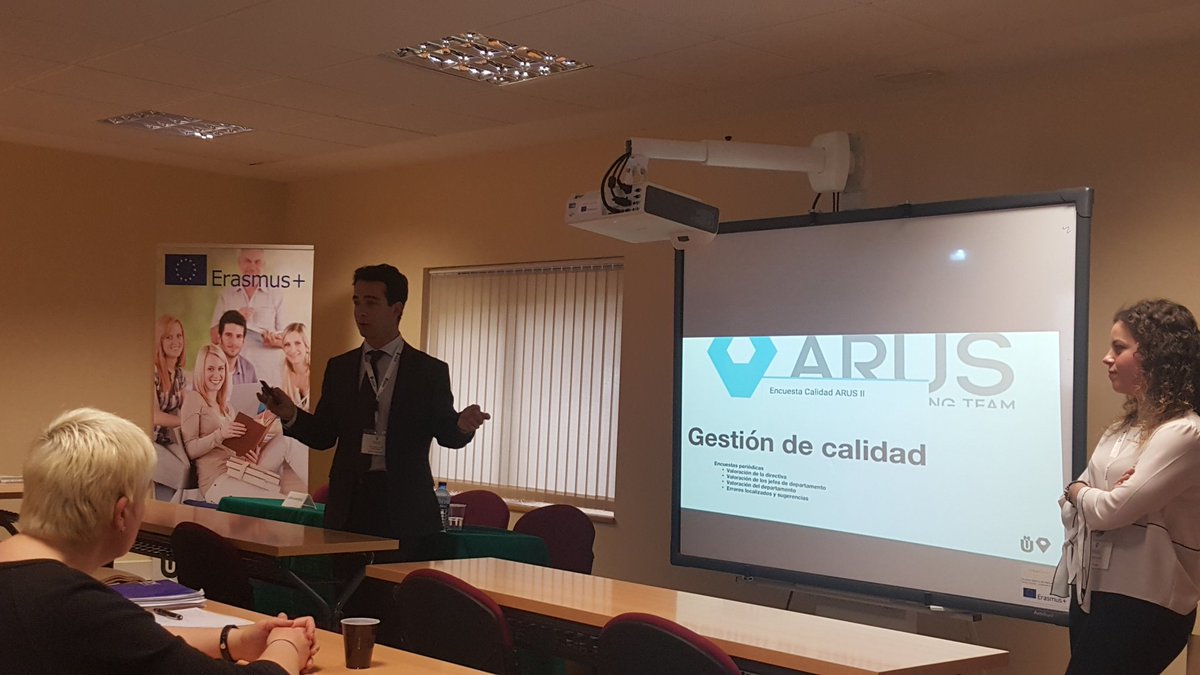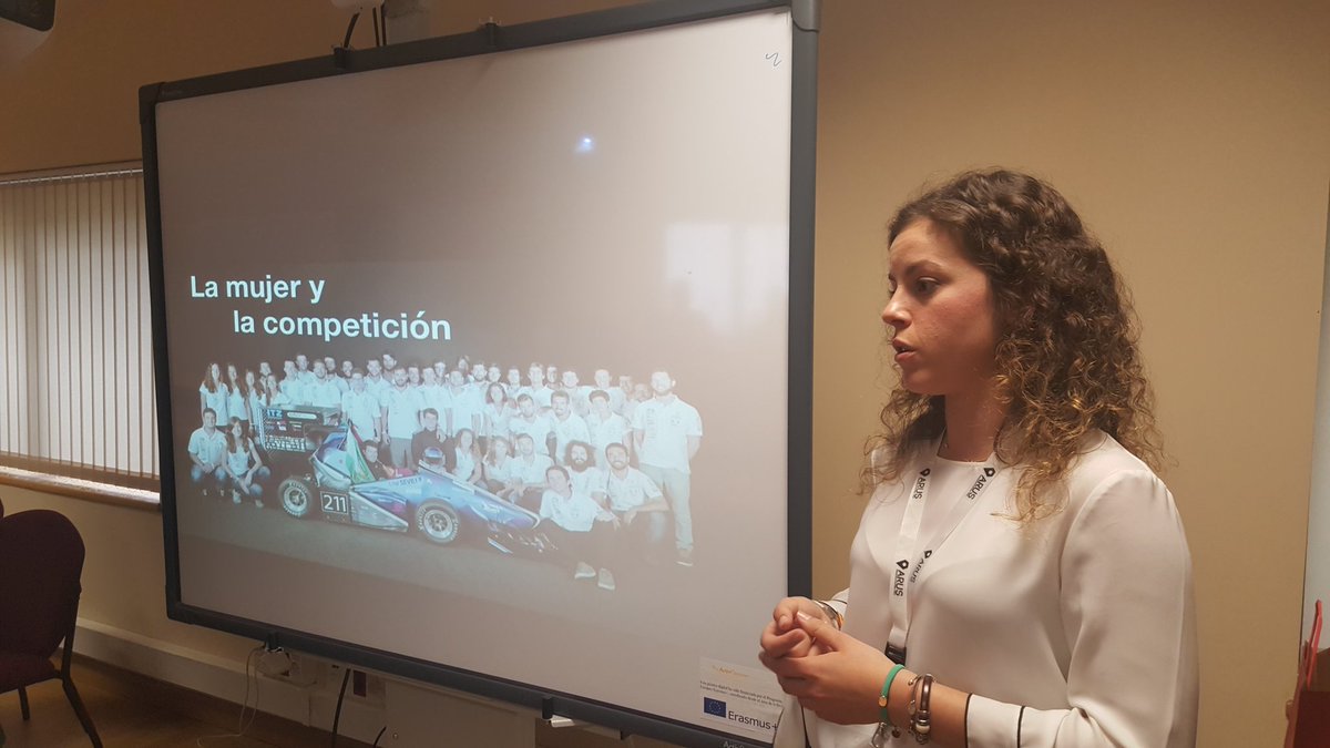 Laura García Llinás, directora general del Proyecto Arus: Andalucía Racing Team, y Jesús Carnerero, de su Departamento de Business, se desplazaron hasta el Campus de Collado Villalba para detallar en qué consiste una iniciativa cuyo objetivo es representar a Sevilla, Andalucía y España en la competición automovilística universitaria más importante del planeta, la Formula Student.