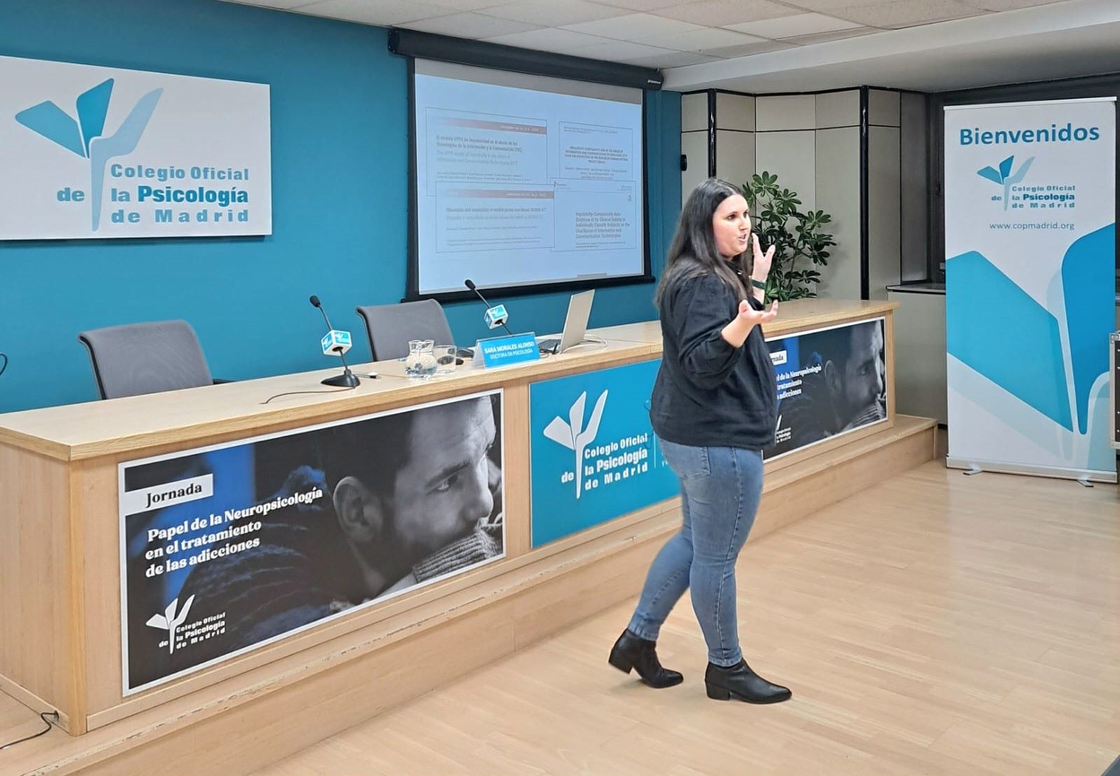 La doctora Sara Morales Alonso, profesora del Grado en Psicología de la Universidad a Distancia de Madrid, UDIMA y del Máster de Psicología General Sanitaria , ha expuesto en las Jornadas de Neuropsicología de la Adicción, que ha acogido el Colegio Oficial de la Psicología de Madrid, los resultados de una investigación en torno a la capacidad de predecir en personas su grado de adicción a sustancias o comportamentales.