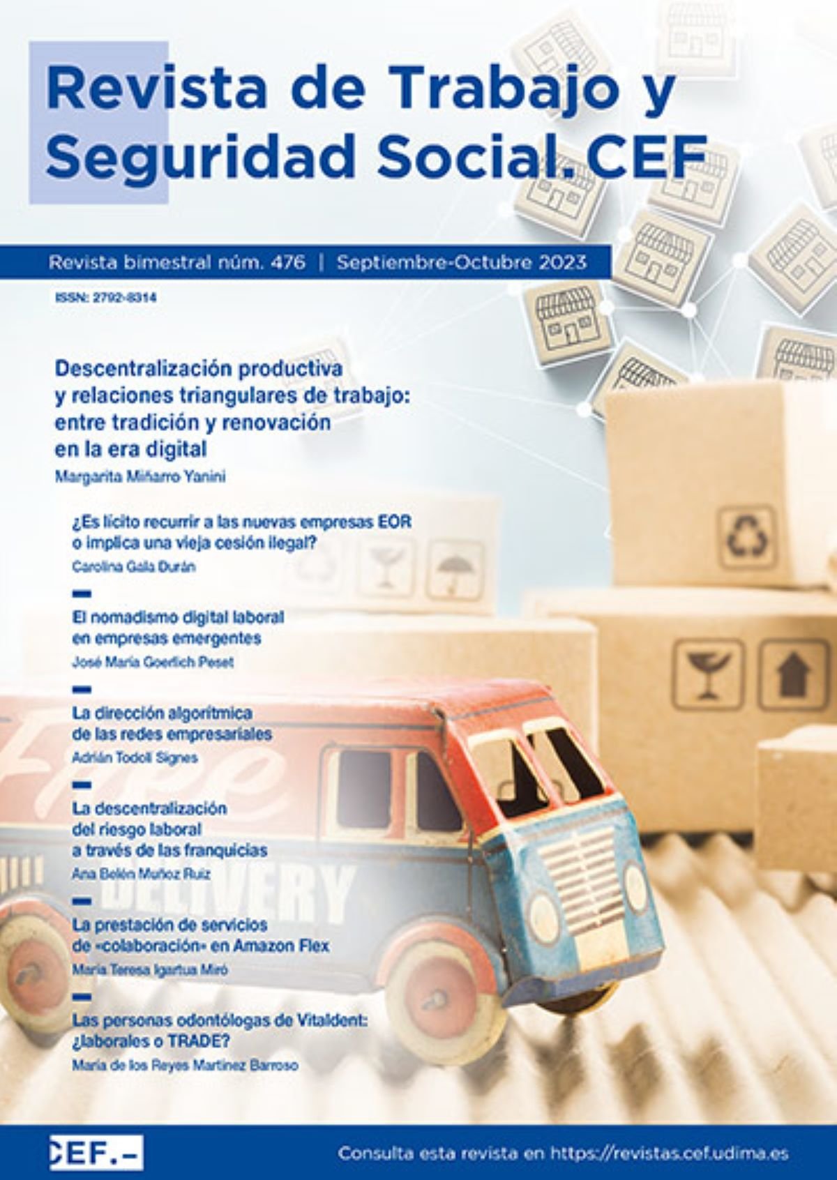 Esta Revista, que se adquiere por suscripción, es publicada y editada por la Editorial Centro de Estudios Financieros con periodicidad mensual desde 1991 hasta diciembre de 2021 y con una frecuencia de seis números al año, los días 7 de enero, marzo, mayo, julio, septiembre y noviembre, respetivamente, y cuyas materias son el derecho del trabajo, derecho laboral, trabajo y recursos humanos.