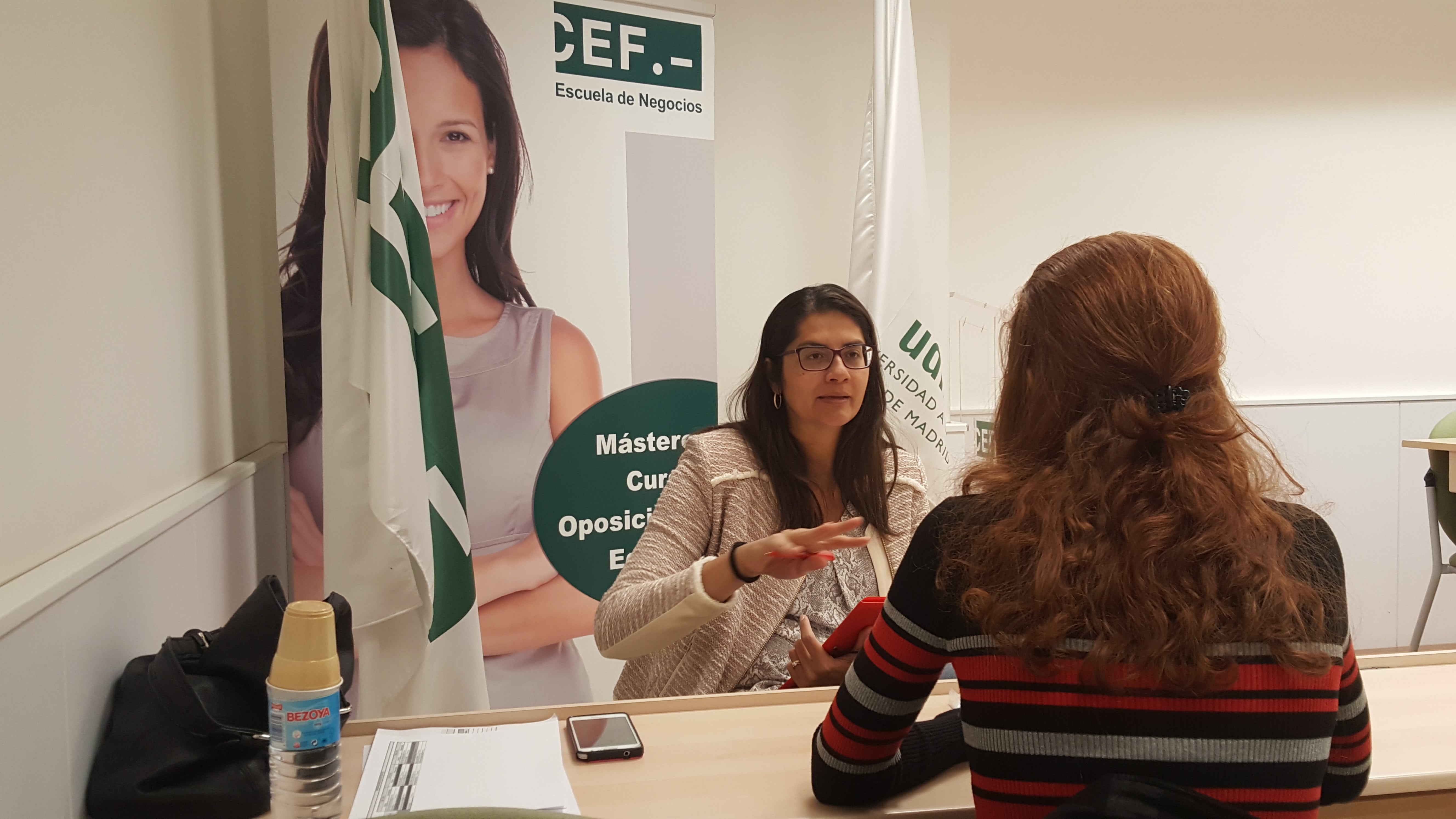 En sesiones programadas con los aspirantes a encontrar un empleo de acuerdo con sus aptitudes, que están teniendo lugar en la sede en Madrid del Centro de Estudios Financieros y la Universidad a Distancia de Madrid, expertos formadores se ‘entrevistan’ con los candidatos, de quienes observan sus debilidades y fortaleza y a quienes aconsejan sobre qué mejorar, añadir o desterrar.
