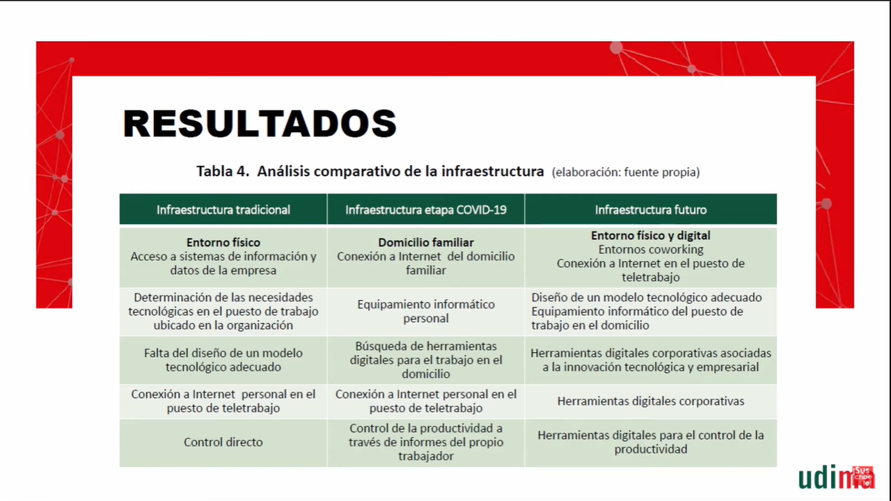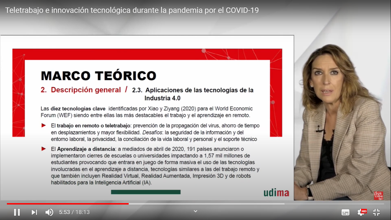 En su doble condición de presidenta de la Universidad UDIMA y Doctora en Derecho del Trabajo y de la Seguridad Social, Arancha de las Heras, defiende: "Los factores de seguridad y salud son importantes en el estudio del teletrabajo y deberían ser considerados en futuras investigaciones". Además, según desprende del estudio, este nuevo escenario laboral "proporciona una innovación disruptiva para minimizar el efecto de la COVID-19".
