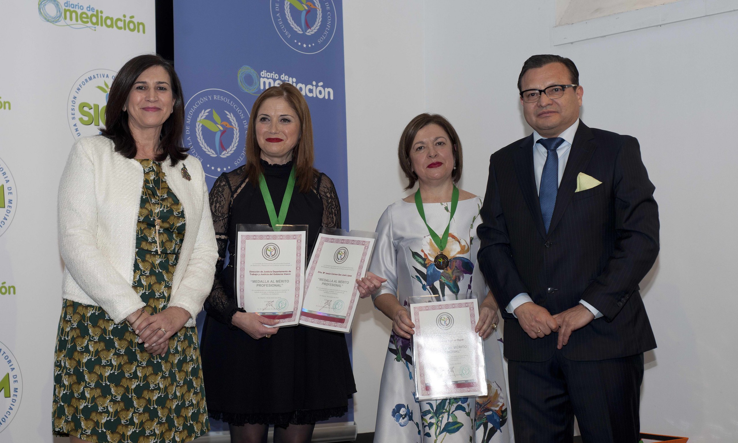 Recibieron la Medalla al Mérito Profesional 2018 Luis Aurelio González, presidente de GEMME en España; Paulino Fajardo, abogado y mediador, con 25 años de experiencia en la resolución internacional de conflictos; Dirección de Justicia del Departamento de Trabajo y Justicia del Gobierno Vasco, como pionera en la implantación de los Servicios de Mediación en el Estado Español; Emilio Calatayud, juez de Menores de Granada, y Amparo Quintana, especialista en derecho privado y Medalla de Oro del Foro Europa 2001.